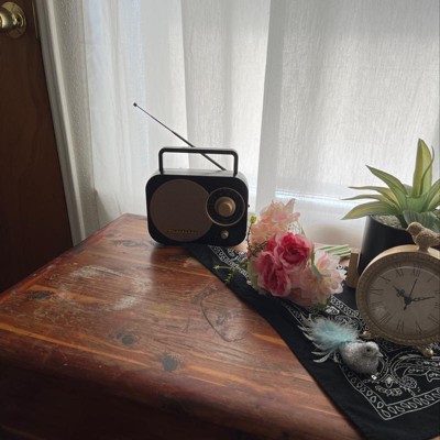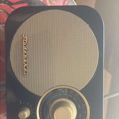 The Studebaker SB2000 AM/FM radio is an retro portable radio with classic styling, and easy to use features. The large analog tuning knob simplifies adjusting to your favorite station and the speaker delivers excellent sound with clear and static-free audio. Play music from other devices like your tablet, iPod, MP3 player or other digital audio players using the built-in auxiliary input jack. The compact, durable design features a carrying handle and telescopic antenna. The SB2000 operates on 120V AC or on 4 x "C" batteries (not included), and makes the radio perfect for taking with you anywhere you go.