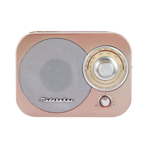 The Studebaker SB2000 AM/FM radio is an retro portable radio with classic styling, and easy to use features. The large analog tuning knob simplifies adjusting to your favorite station and the speaker delivers excellent sound with clear and static-free audio. Play music from other devices like your tablet, iPod, MP3 player or other digital audio players using the built-in auxiliary input jack. The compact, durable design features a carrying handle and telescopic antenna. The SB2000 operates on 120V AC or on 4 x "C" batteries (not included), and makes the radio perfect for taking with you anywhere you go.