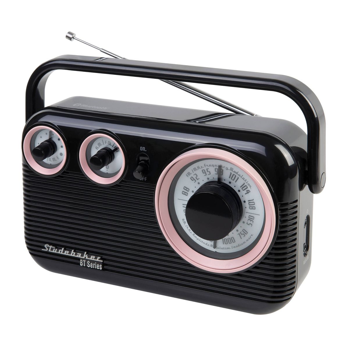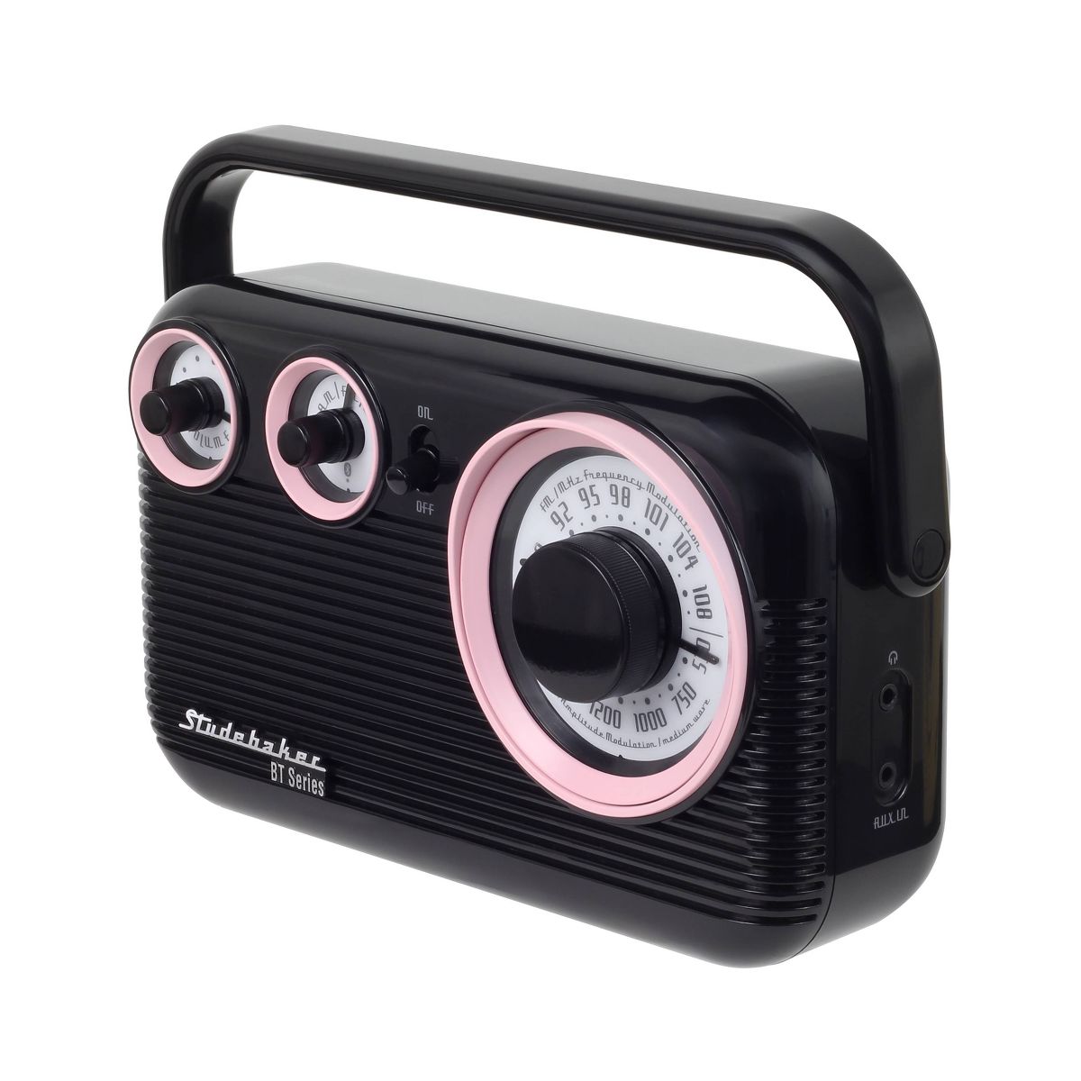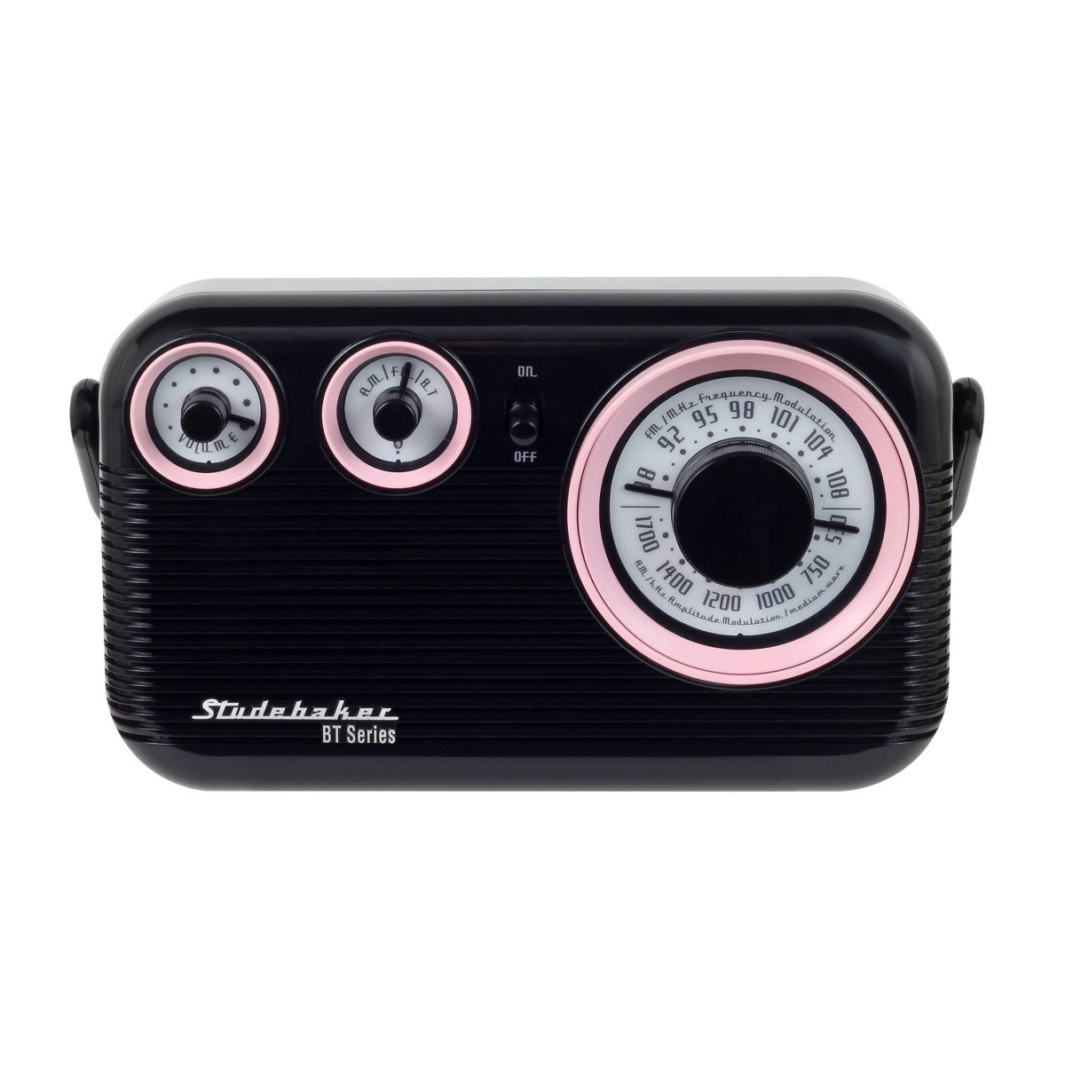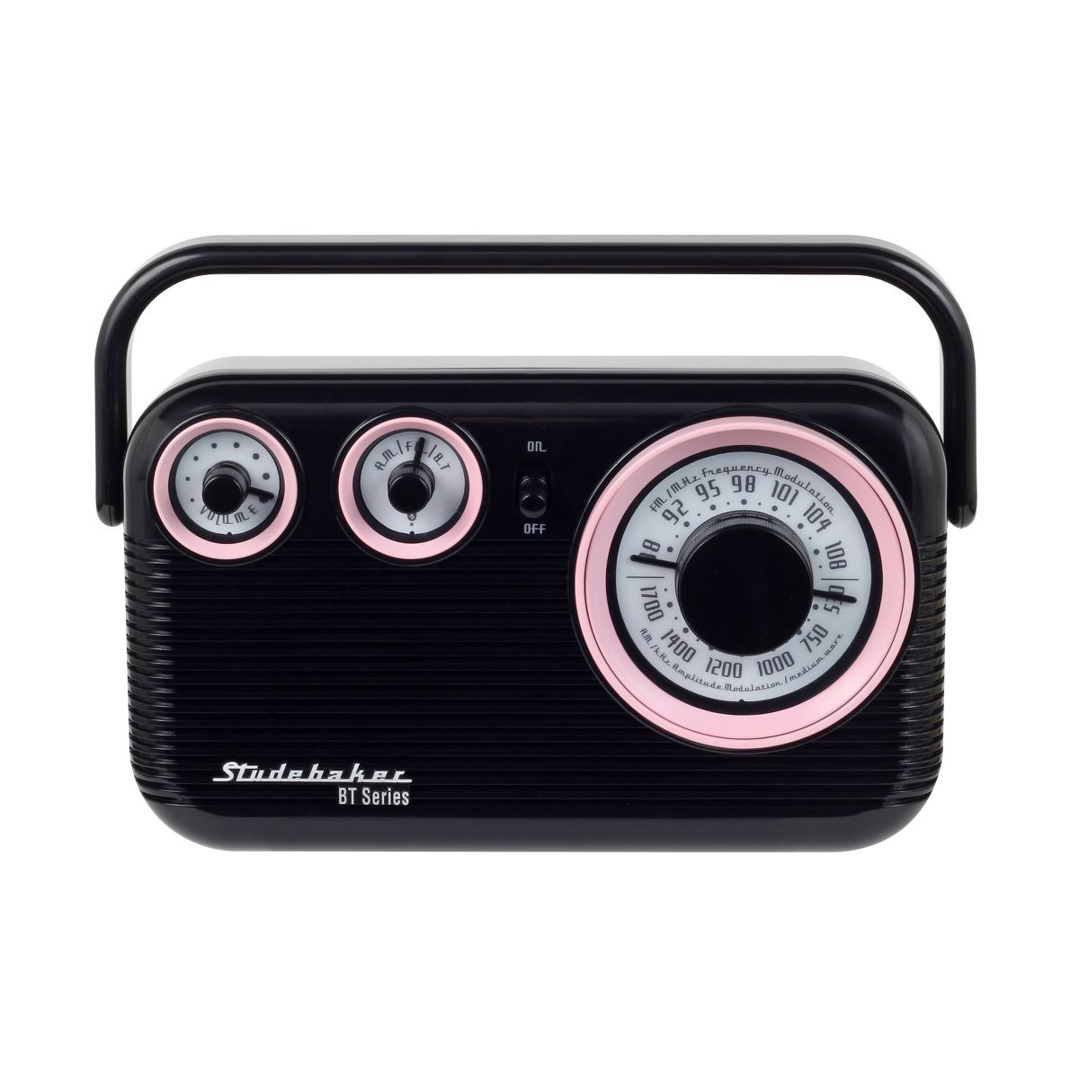 Studebaker Retro Portable AM/FM Radio - Black/Pink (SB2003BTPB): Bluetooth & 3.5mm Jack