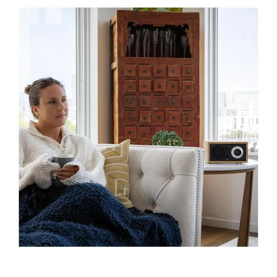 DesignThe Model One BT radio beings with a handmade wood cabinet that is both beautiful and the ideal acoustically inert housing which shapes the Tivoli Audio sound. The form factor of the speaker grill and control knobs are laid out in proportion which delivers a balanced look and feel.
