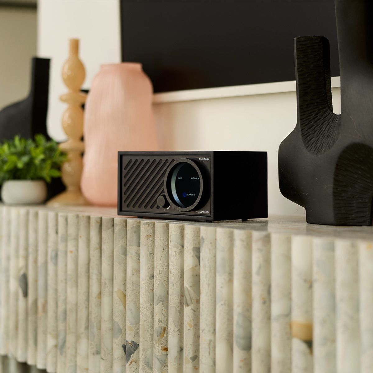 A design-driven Wi-Fi-enabled radio that keeps you connected to the music you love. The Model One Digital Generation 3 blends modern technology with contemporary design featuring AirPlay and Google Cast for seamless streaming of your favorite content. Switch to radio mode to enjoy local broadcasts with Tivoli Audio’s renowned reception or quickly connect a device via Bluetooth®. With multiple listening options the Model One Digital fills any space with clear dynamic sound—and delivers all the modern features in a way that’s simple for every user.