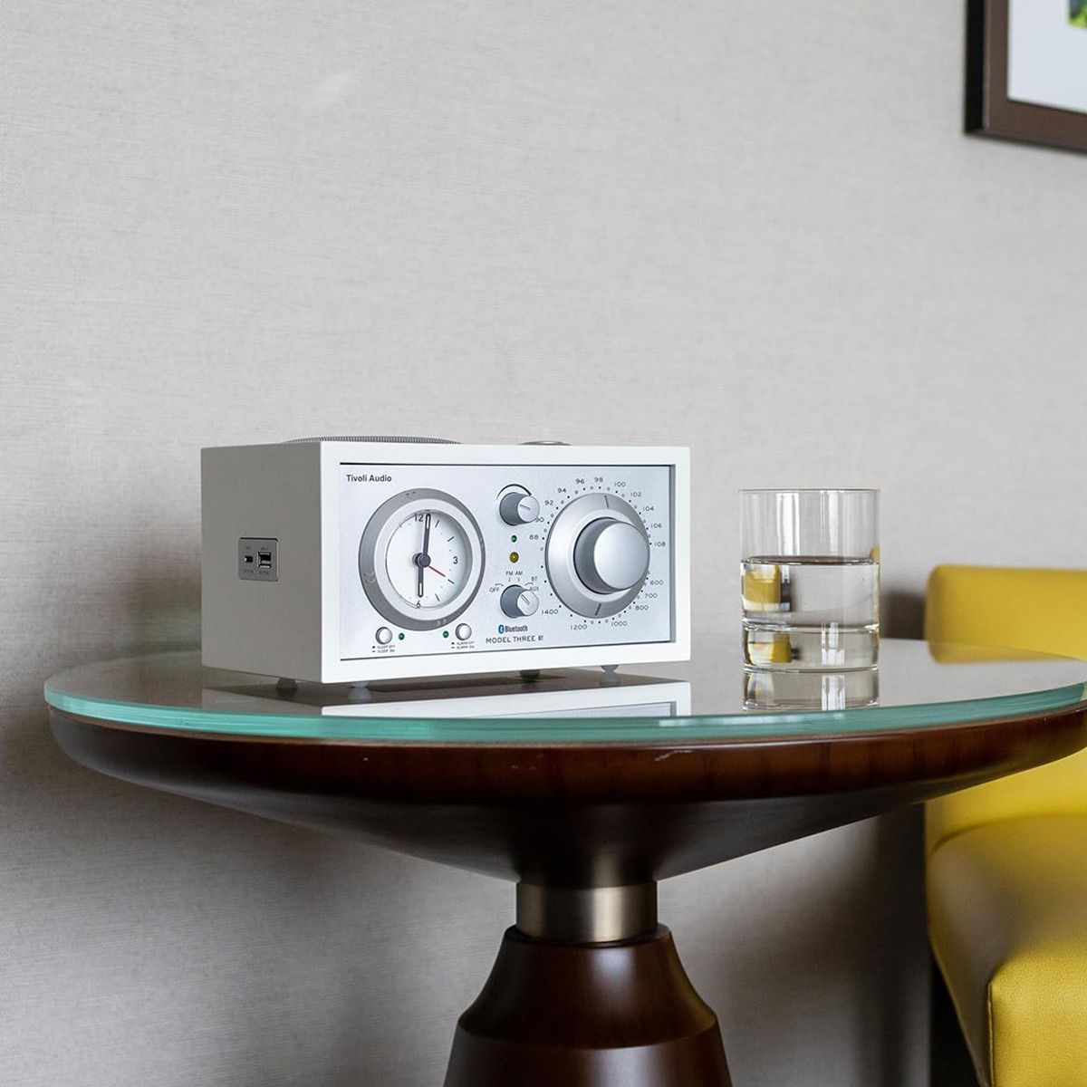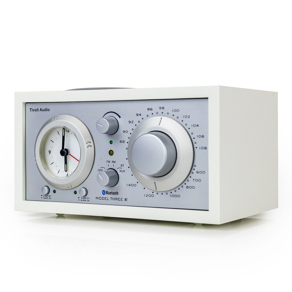 Tivoli Audio Model Three AM/FM Bluetooth Clock Radio with USB Charging Ports (White/Silver)