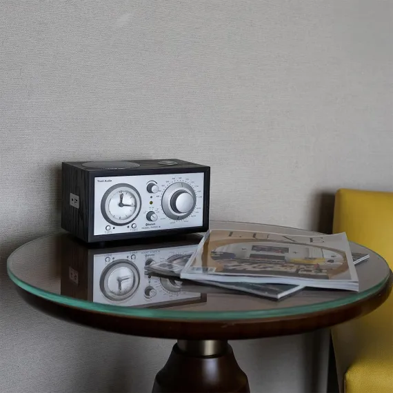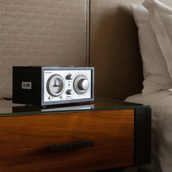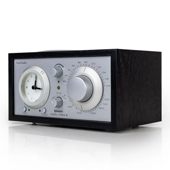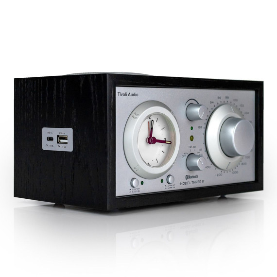 Any clock radio can wake you up but only the Model Three BT does so simply elegantly and in high-fidelity sound. With Bluetooth streaming a softly illuminated clock face a sensitive AM/FM tuner USB-A USB-C charging ports and a beautifully crafted wood cabinet it’s the perfect bedside companion—day or night.