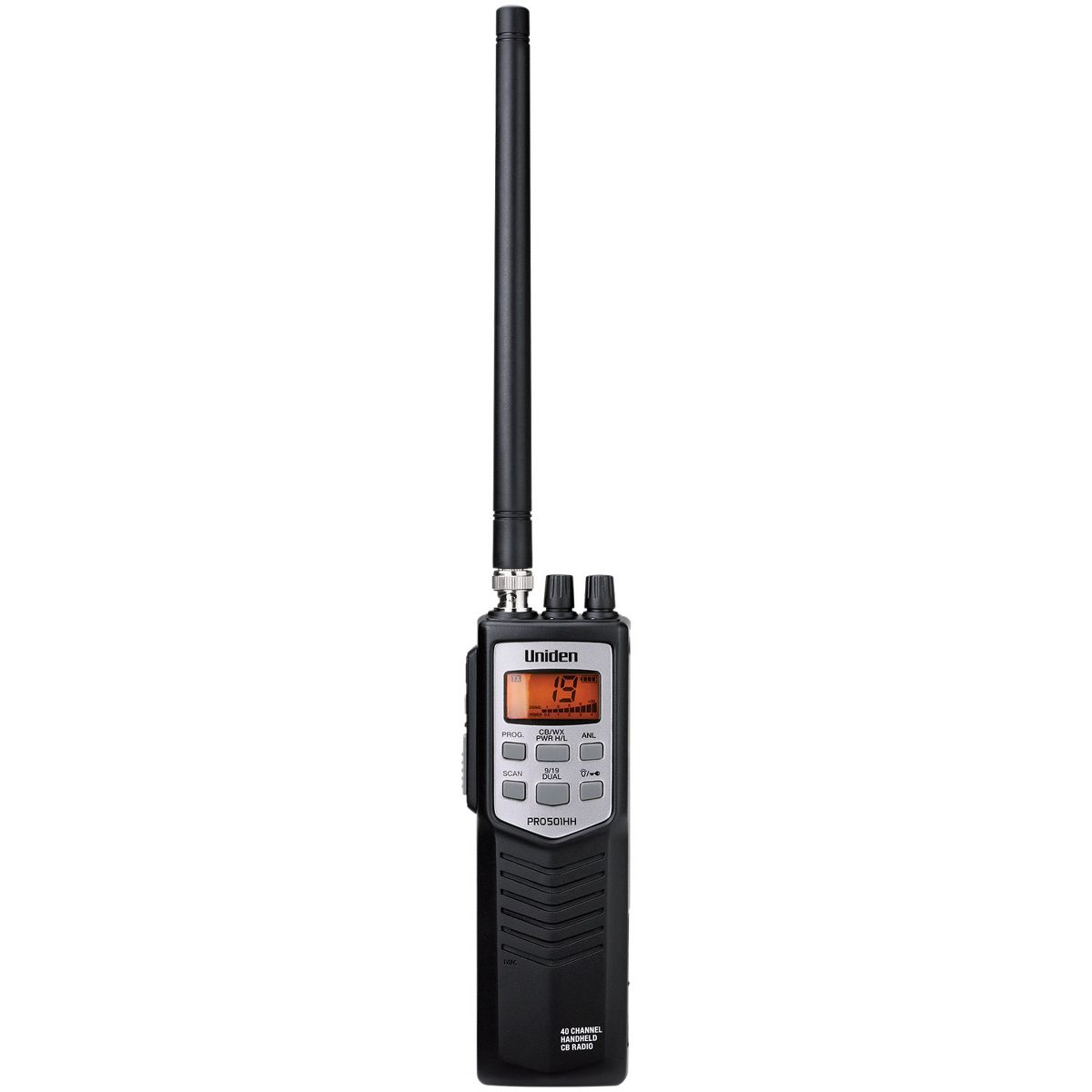 The Uniden PRO501HH 40-Channel Handheld CB with Weather Alert includes the CB features you need every day. 40 CB channels let you tune into the action channels or break away to do your own thing. NOAA Weather keeps you informed when severe weather threatens. And the dual-watch feature lets you talk on 1 channel, while keeping an ear on another channel you are interested in. Use high power to punch out the strongest signal, or low power to preserve the batteries if you're not plugged into your vehicle's 12-volt accessory port.