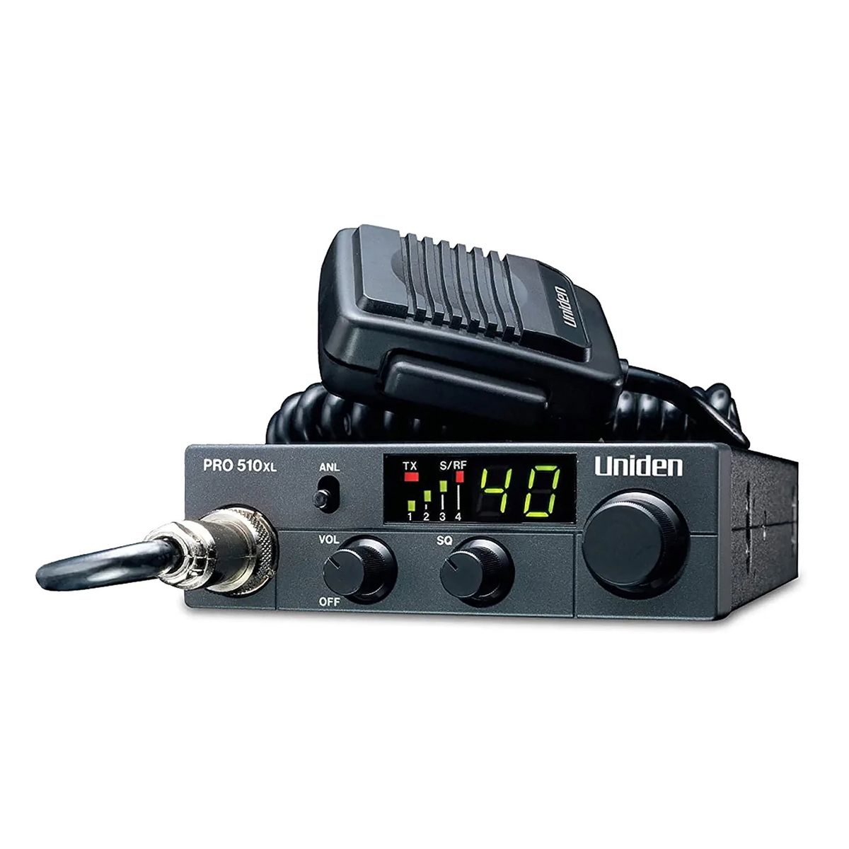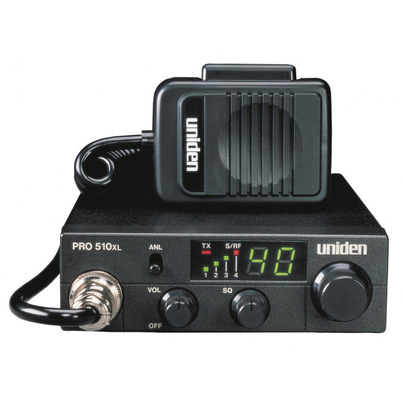 As part of Uniden's Professional Series, the PRO510XL CB radio offers high-performance 40-channel operation in a compact, ultra-mobile radio. It is extremely popular for industrial, commercial, and off-road use. This model operates on any of the 40 AM frequencies authorized by the FCC, and its S/RF meter and red-lit LED indicators help you monitor activity at a glance. A built-in noise limiter and ANL switch and squelch control fine-tune performance and eliminate noise, and the front-positioned microphone has an extra-long, coiled cord for convenient use.
