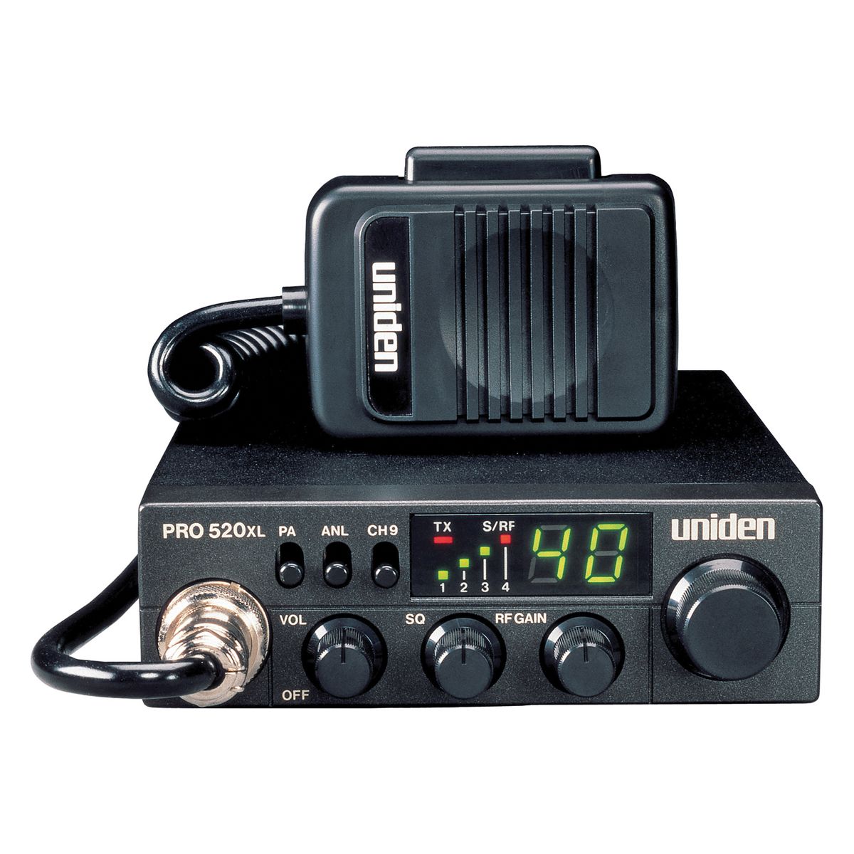 Uniden’s Professional Series PRO520XL Heavy-Duty CB radio offers a full 4 watts transmit power, with RF gain control and 40-Channel operation in a compact, rugged-construction CB radio. The PRO520XL has a front mount 4-pin electret microphone with extra-long coiled cord, S/RF LED meter, instant emergency channel 9, transmit indicator lights, Automatic Noise Limiter switch, Public Address switch, Volume control, Squelch control, and more.