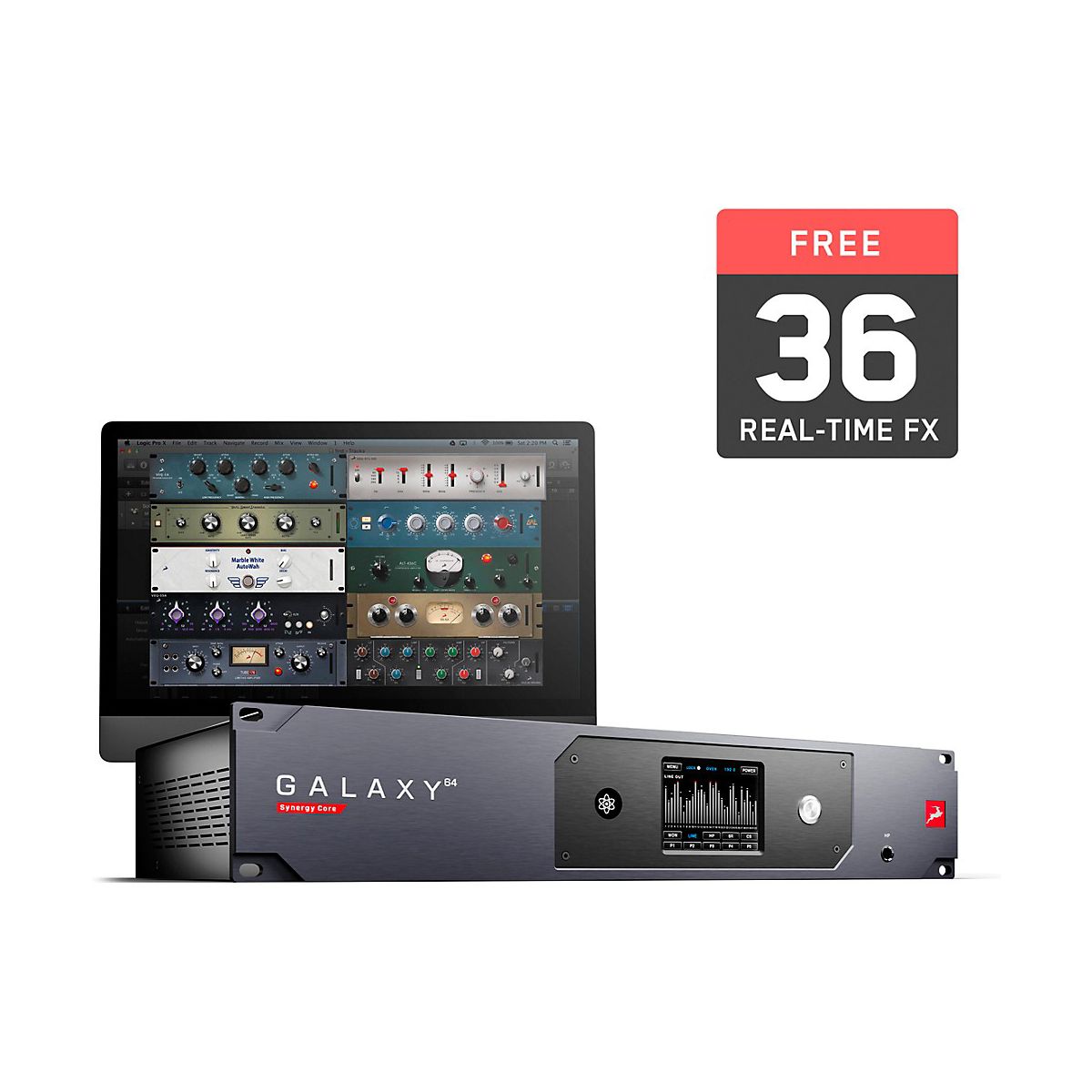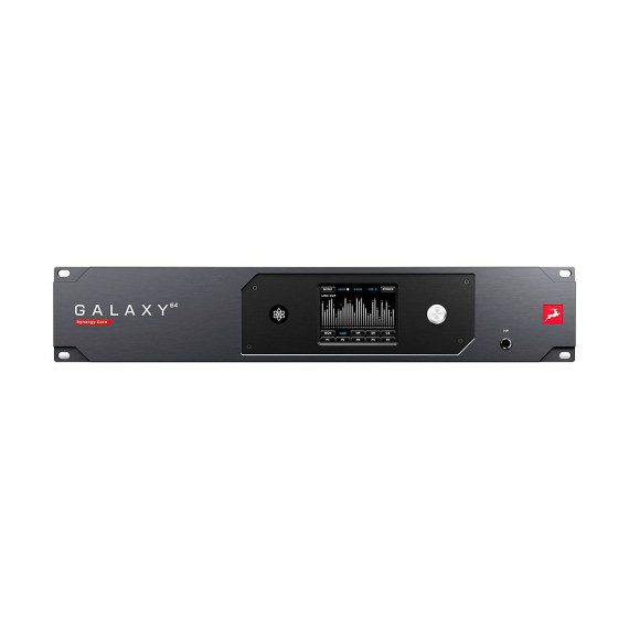 Galaxy 64 Synergy Core is a high-end recording system that connects entire studio within a 2U rack space while providing high-fidelity audio and onboard plug-in processing for most demanding projects. With Dante, HDX and Thunderbolt connectivity, the world’s first 64-channel AD/DA converter offers unbeatable flexibility when moving sound around high-profile production facility, live stage, broadcast or other enterprise applications. The interface is designed to be the hub of entire recording environment that eliminates the need for any external modules and expansion cards, thus centralizing entire setup. Galaxy 64 Synergy Core is the only interface to offer two Dante ports for audio networking, four HDX ports for a full array of 128 channels at 192kHz sample rate in Pro Tools as well as Thunderbolt connectivity. These options can be used simultaneously with multiple systems for easy adaptation to different workflows with preferred DAW applications. This is all made possible by utilizing Antelope’s exclusive FPGA configuration and advanced digital routing.The interface comes with 36 real-time plug-ins in a collection largely composed of software emulations of vintage analog gear found in the world’s most renowned facilities. The onboard Synergy Core offloads all processing to the interface while allowing direct monitoring with plugins in real time with no perceived latency – a feature widely used in live performances.The interface is designed to be the hub of entire recording environment eliminating the need for any expansion modules and cards, thus centralizing entire setup. Switching from project to project is effortless with the fast recall of presets and adapting to different workflows is made easier by allowing to address numerous applications using a single hardware frame.Dante Audio Over IP The audio networking choice of nearly all professional audio manufacturers, Dante audio networking uses standard IP networks to transmit high-quality, uncompressed audio with near-zero latency. The ease of installation, affordable cabling and glitch-free transmission make Dante the optimal choice for installations, live events, production facilities and any situation where large volumes of high-definition digital audio must be reliably transferred over large distances.Galaxy 64 Synergy Core joins the expansive Dante ecosystem with two RJ-45 ports, each carrying 64 channels of 24-bit/192kHz audio. This configuration provides straightforward integration and reliable redundancy, with the secondary RJ-45 port serving as a backup 64-channel Dante route. 128 Channels in Pro Tools Galaxy 64 Synergy Core is the only interface to offer four HDX ports. Each a primary port, they enable interfacing to two HDX cards simultaneously for a primary/secondary recording setup or a full array of 128 channels ready to interface across multiple Pro Tools sessions through several hosts. What is especially impressive about Antelope Audio’s exclusive FPGA configuration is that it allows this channel count to be maintained at high sample rates such as 192kHz.Cross-Platform Interface Two Thunderbolt 3 ports and custom drivers for Windows and macOS guarantee optimal cross-platform operation for the Galaxy 64 Synergy Core. Developed from the ground up and field-tested for low latency and stability at high sample rates, the Antelope Thunderbolt driver works behind the scenes to carry 64 channels of 192kHz audio wherever want them to go – on both PC and Mac setups based around any market-leading DAW. The left Thunderbolt port enables USB-C connection to a secondary computer for remote Control Panel configurations. This is the first Antelope Audio interface featuring two Thunderbolt 3 ports that enable daisy-chaining
