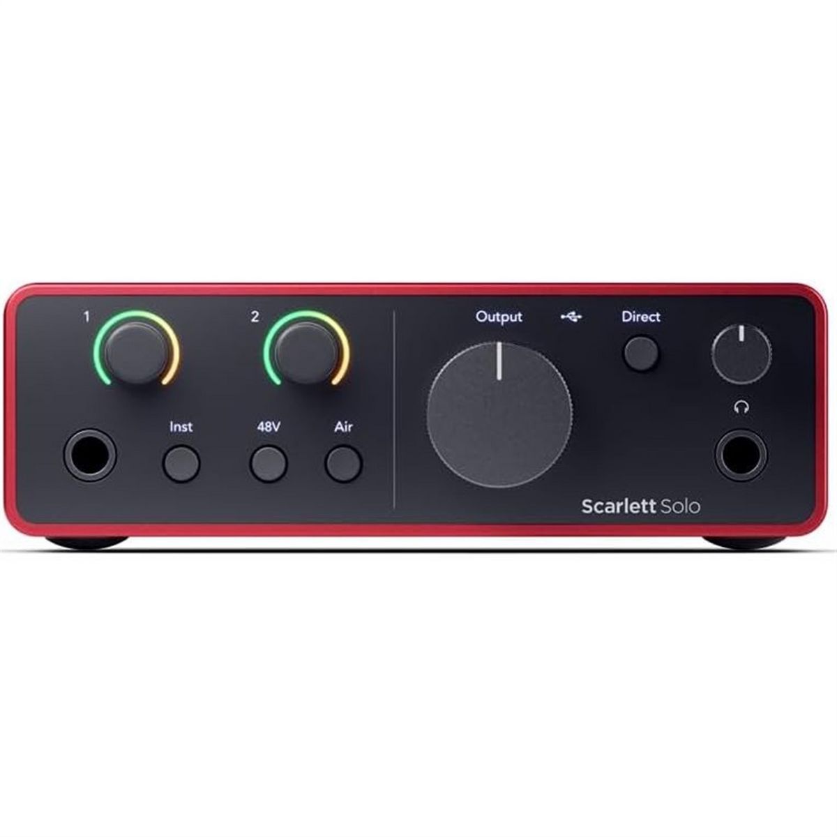 The 4th-gen Solo is the best-sounding Focusrite audio interface yet. Its 4th-generation microphone preamp delivers a clear, detailed sound that holds up to tracks recorded with higher-end recording studio kit and Focusrite's acclaimed Air Mode ups the ante with added high-end presence and harmonic-rich drive reminiscent of a top-of-the-line studio console. Its hi-Z input was tailor-made for electric guitarists, yielding an amp-like feel guaranteed to inspire. The recording studio package is equipped with studio-grade AD/DA converters culled from Focusrite's flagship RedNet interfaces, supplying you with crystal-clear sound and an impressive 120dB of dynamic range. The Focusrite Scarlett Solo comes loaded with session-enhancing features. The Auto Gain of the studio setup bundle optimizes your recording levels with the touch of a button, while Clip Safe automatically adjusts your gain level if you're at risk for clipping. The Solo includes front-panel Dynamic Gain Halos for at-a-glance monitoring of your input and output signal levels. Using headphones with this music equipment for home studio is a joy thanks to its powerful, custom-designed headphone amplifier, which includes an independent level control for loud, clear, accurate monitoring and playback. The Solo's Easy Start function guides beginning users through getting setup while providing recording tips and other helpful content. You also get loopback functionality, enabling you to route stereo audio from music apps straight to your DAW via virtual inputs.