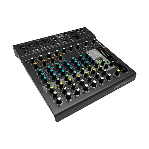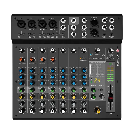 The 12-channel analog mixer With Bluetooth, FX and USB Audio from Harbinger is a versatile console for live performance and recording. This 12-input, two-bus mixer includes four studio-grade mic preamps, integrated digital effects and a built-in USB audio interface to connect to computer. Musicians will appreciate the high-impedance instrument input and separate monitor mix bus. Content creators and podcasters can take advantage of the Bluetooth connectivity and recording software to enhance their productions.