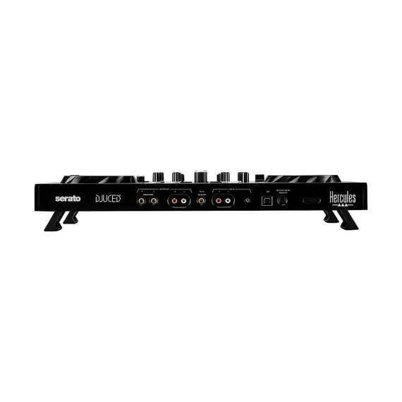 Equipped with responsive 5.5" capacitive jog wheels and a familiar club-style mixer lat, the Inpulse 500 gives the tactile feel and professional control needed to perform with confidence. Each deck includes long VU meters, full EQ control and spaciously placed knobs and faders for effortless mixing. Extendable feet elevate the unit for improved visibility and protect it from table spills—perfect for any performance environment.