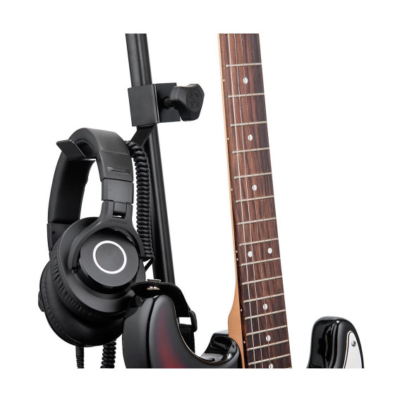 By hanging a guitar strap on a HA700 holder, musicians can reduce the risk of tripping over straps on the stage floor. It can also be used to prevent professional musicians from stepping on wireless equipment hung on the guitar strap. The holder can also firmly hold headphones weighing under 4.5 lbs, and keep audio cables untangled and organized. Lightweight and handy, the HA700 holder is a useful addition for stage, studio and home.HA700 is suitable for a tube diameter, 15 – 30 mm, and can be simply clamped to the tubes of AGS Guitar Stands, Microphone Stands, and Orchestra Stands.