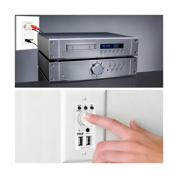 The Pyle In-Wall Bluetooth Audio Receiver, model PWPBT67, brings seamless audio control to any room. This dual wall plate system features Bluetooth connectivity, allowing you to stream music wirelessly from your smartphone, tablet, laptop, or computer. Designed for easy installation, the system fits into a standard U.S. single electrical gang box, making it perfect for home theater, office, or business audio applications.