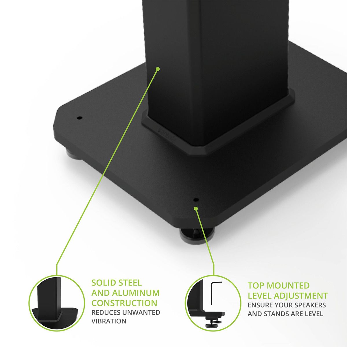 Simple Level AdjustmentsEasily adjust the level of your stands from the top of the base with the included tool and bubble level to ensure your stands are set to extract the full potential of your audio system.