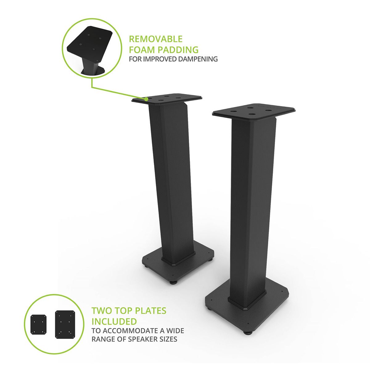 •Top Plate: Small and extended top plate included to fit with multiple size speakers