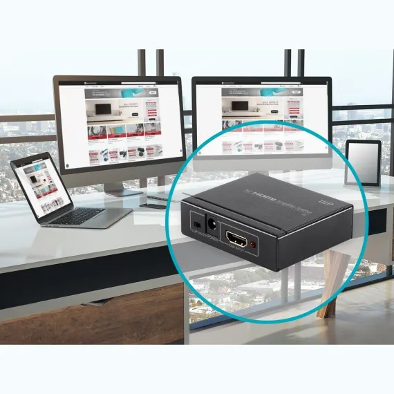 This Blackbird 4K HDMI splitter distributes a single HDMI source to two HDMI displays.
