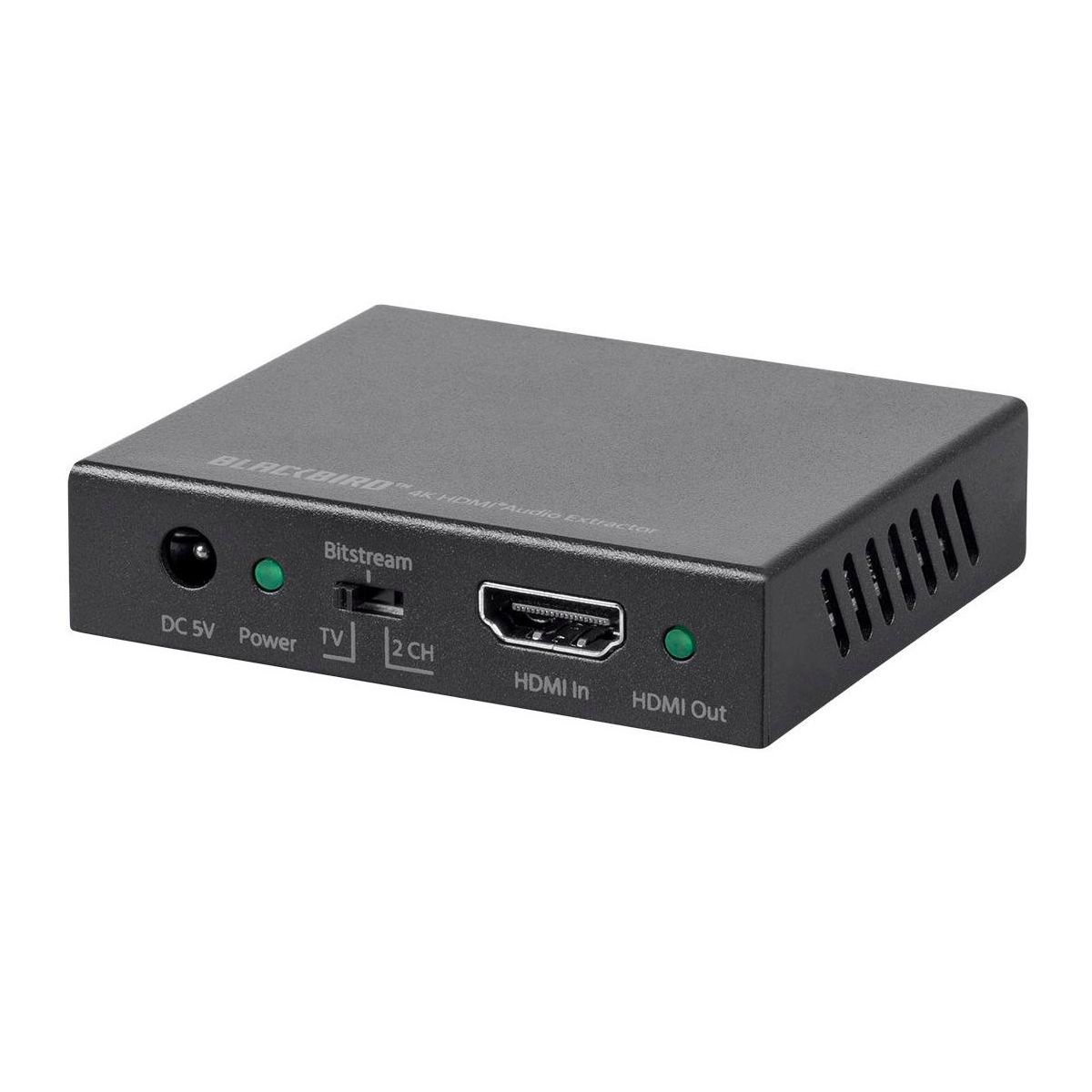 This Blackbird 4K HDMI Audio Extractor extracts the audio signals from HDMI video streams. It supports analog stereo audio, as well as high-definition multichannel audio streams over the S/PDIF digital optical audio output. It supports video resolutions up to 4K@60Hz 4:4:4, 10-bit High Dynamic Range (HDR) pass-through, and audio sampling rates up to 192kHz. It is fully compliant with the HDMI 2.0b and HDCP 2.2 standards and provides up to 18Gbps video bandwidth.