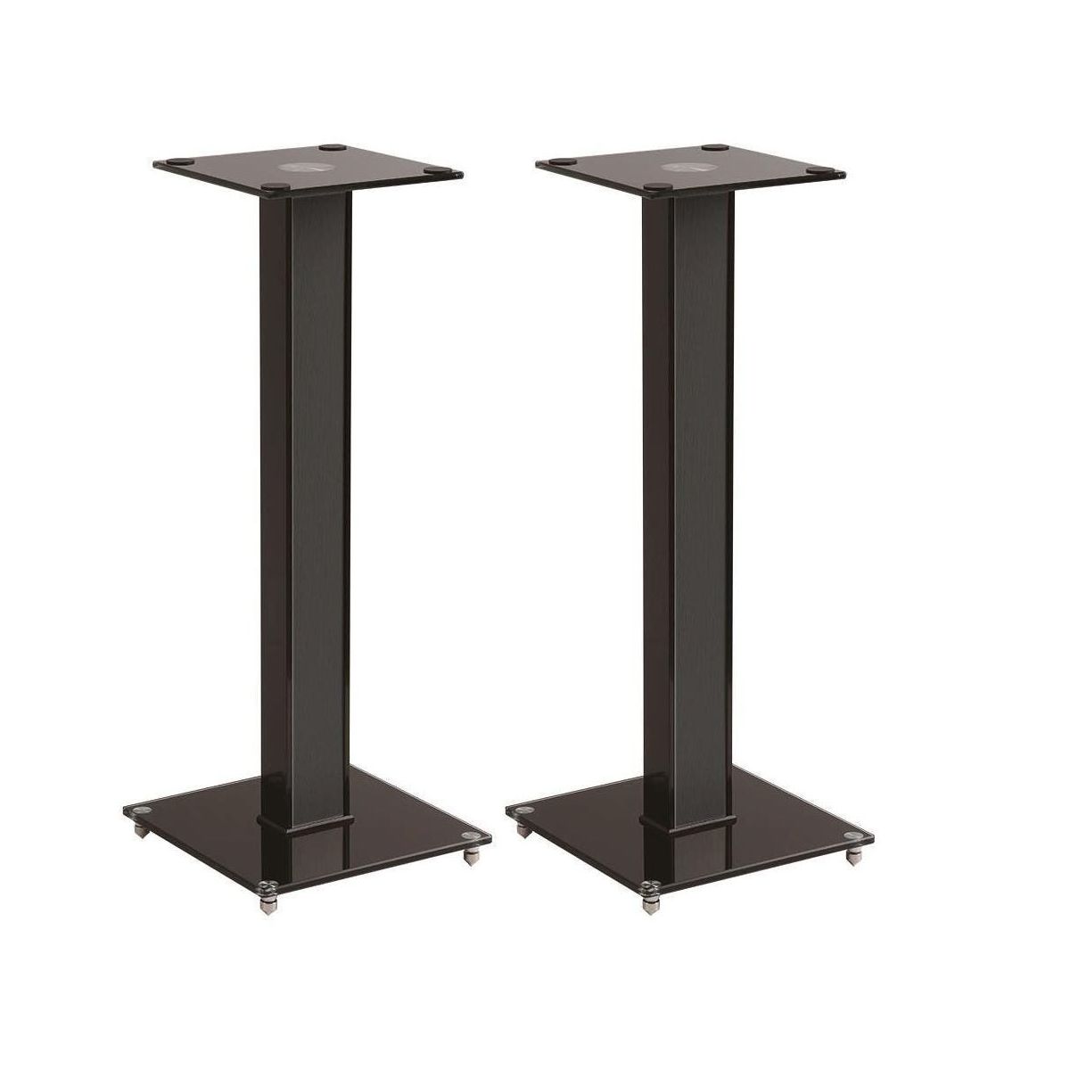 The Elements speaker stand series from Monoprice will complement your room decor while also improving the sound of your bookshelf speakers. Each stand features a strong tempered glass base with floor spikes for added stability, an MDF wood veneer for a touch of elegant design, and a strap to secure the speaker to the stand for extra security in case it gets bumped. Each stand supports up to 22 lbs. (10 kg) weight and are 28in (730mm) tall. The lower glass plate is 0.33in (8mm) thick and measures 7.9in x 7.9in (200 x 200 mm), while the lower plate is 0.24in (6mm) thick and measures 9.8in x 9.8in (250 x 250 mm). Each order includes two (2) speaker stands.