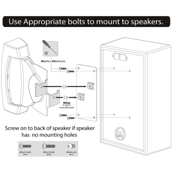 Mount-It! MI-SB130 is rated for 22 lbs. Each package comes with a pair of speaker wall mounts. Each mount is made up of two bracket pieces and ABS decorative covers. One bracket is installed on the wall, the other is bolted to the back of your speaker. Once the two pieces are installed, the speaker and the metal bracket hang onto the wall bracket. Two smaller screws are then installed to keep the speaker from being raised off of the wall bracket. There's no way your speakers will fall off of these mounts.