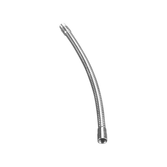 Solid steel male and female threaded ends. Flexible neck is made from interlocking rolled metal.