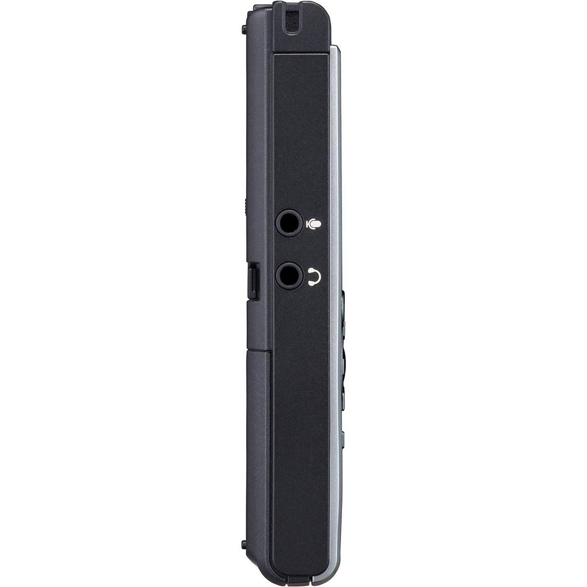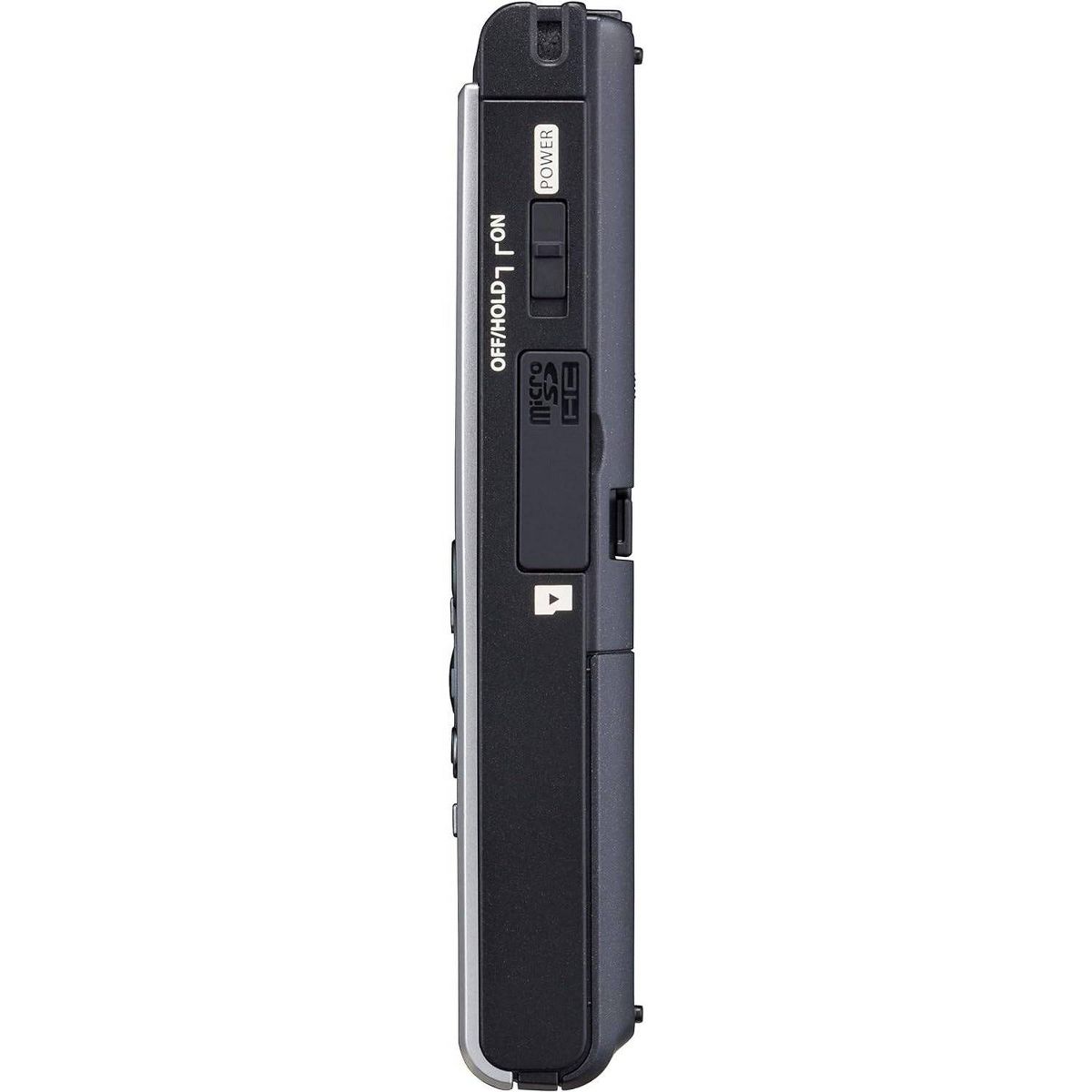 The silver and black OM SYSTEM WS-882 Digital Voice Recorder from OM SYSTEM is a digital voice recorder with two directional microphones positioned at a 90° angle to capture stereo recordings to its 4GB internal memory. Easy to use, the recorder delivers clear, intelligible voice quality for meetings, interviews, and dictation and offers a high-quality mono linear PCM recording mode to ensure outstanding results when every word counts.