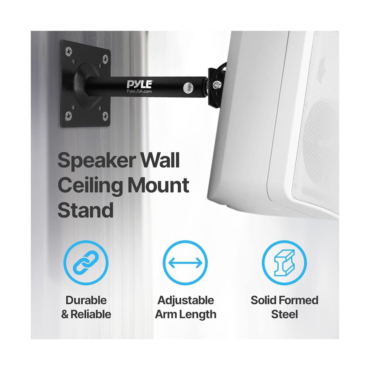 The Pyle Dual Wall / Ceiling Speaker Mounts (PSTNDC31) offer a versatile and secure solution for mounting your speakers. These universal mounts are designed to safely hang speakers on any flat surface, whether it's a wall or ceiling. Made from heavy-duty reinforced solid formed steel, they provide reliable support and stability for your audio equipment.