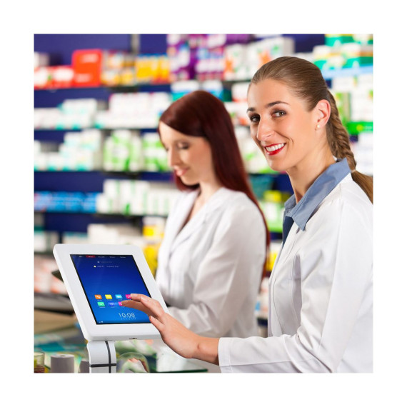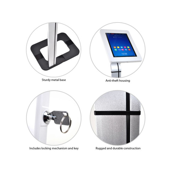 Secure your tablet with the Pyle iPad Security / Anti-Theft Stand Mount, designed for tablets ranging from 7 to 10.2 inches. This robust stand ensures your device stays safe in public settings, thanks to its heavy-duty steel construction and anti-theft lock. The adjustable and tamper-proof design makes it perfect for use in various commercial and public environments, offering peace of mind while providing a professional display.