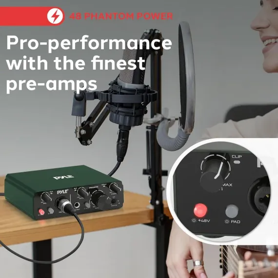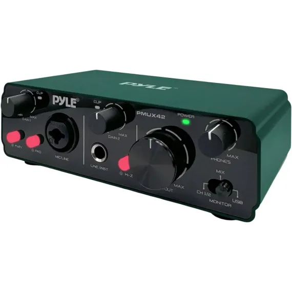 Pyle USB/ASIO Audio Interface for Recording, Songwriting, Streaming, and Podcasting - PMUX42.5