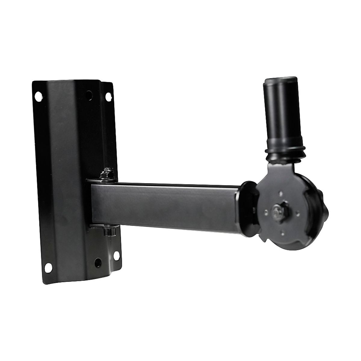 The Rok-It RI-SPK-WM50 Adjustable Wall-Mount Speaker Brackets make it easy to put speakers where want them. These brackets hold speakers up to 80 pounds, so even big speakers stay safe on the wall. Made of steel, the mounts don't bend or break. can twist the brackets left or right up to 30 degrees, or tilt them down so sound reaches the whole room. The 1-3/8" insert fits most speakers that are less than 22" deep. This means can use them at home or in a studio. The black finish gives the brackets a clean look, so they blend in with other gear. These are strong mounts for people who want speakers up off the floor.