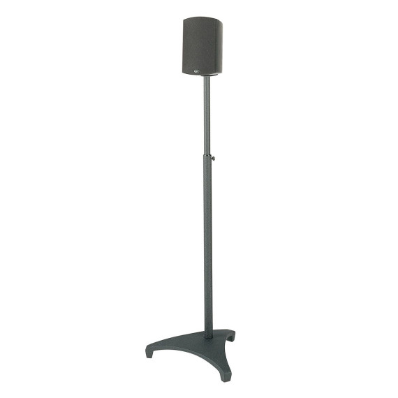 The Sanus Euro Series EFSat stands are adjustable-height speaker stands for satellite speakers up to 10 lbs. They include high-mass cast-iron bases with rubber feet and adjustable carpet spikes. The sturdy steel pillar can be adjusted from 26 to 42 inches and feature concealed wire paths to organize cables. The stands also include 2.5" by 3.25" and 5" by 5" top plates as well as L-shaped and Klipsch RS and Quintet brackets to accommodate most satellite speakers.
