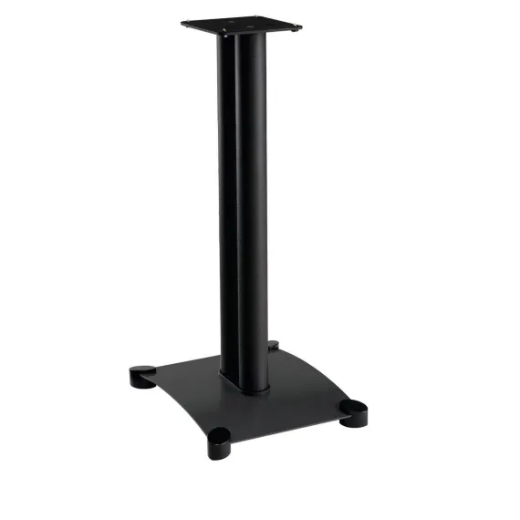 The SANUS Steel Series SF26 is a 26-inch stand for medium-to-large bookshelf speakers up to 35 lbs. Its extra-large steel base includes optional carpet spikes for superior stability on any surface. Twin heavy-gauge steel pillars feature a concealed wire path and resonance damping rings that can be filled with sand or shot for added mass. The 6- by 6.5-inch top plate offers brass studs and neoprene pads for speaker isolation. This product is sold as a pair.