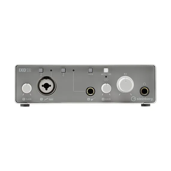 The Steinberg IXO12 portable 2x2 USB audio interface brings pristine 24-bit/192kHz recording and streaming capabilities anywhere music takes . The IXO12 lets capture studio-quality recordings, podcasts and live performances on the go with its Class-A microphone preamp with +48v phantom power, Hi-Z instrument input and direct hardware monitoring. Take studio-quality recording and streaming rig anywhere with the convenient IXO12.