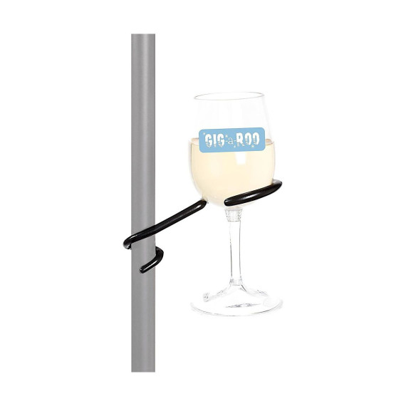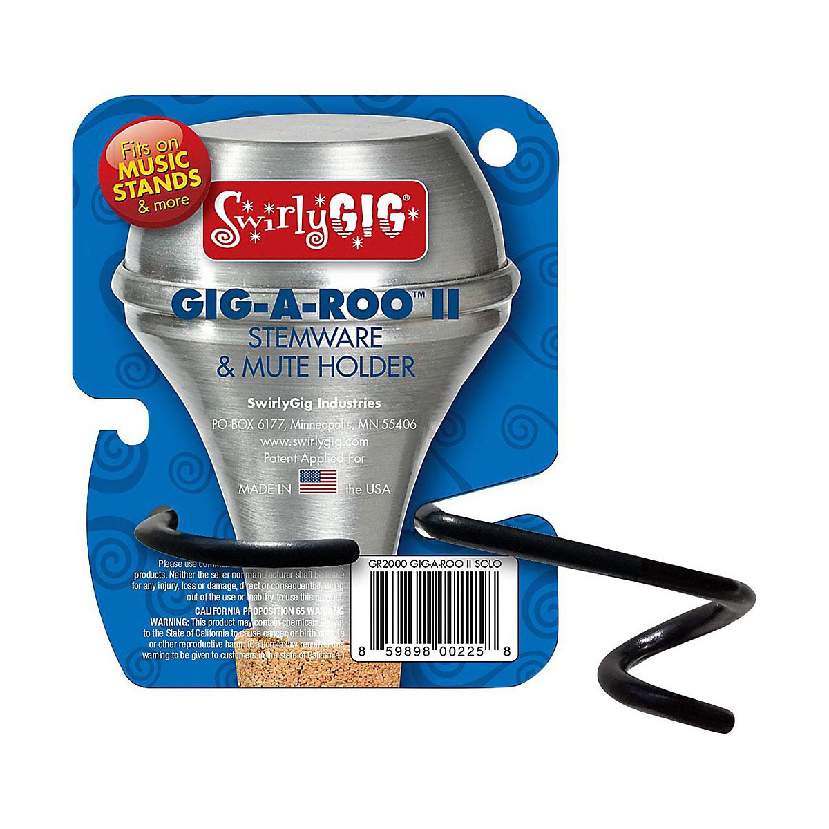 The Gig-A-Roo II holds stemware and/or horn mutes. Fits snuggly on a standard music stand. Use two or three to hold various mute sizes. Simple to use, repositionable, light-weight and easy to stow in an instrument case. Made of resilient spring steel and coated in protective PVC for grip and durability. Also fits on any vertical 1-inch tubing. The inside of the ring is 3 1/4 inches. It is remarkably simple to use, it has no moving parts, nothing to adjust or wear out. It was designed to fit on 1-inch tubing (which is about the size of a quarter) and fits snuggly, using only friction and gravity, on a standard music stand (like a Manhasset or Hamilton). The Gig-A-Roo II stemware and mute holder is made of resilient spring steel, then coated in protective PVC for grip and durability. The Gig-A-Roo II stemware and mute holder also works great on lawn chairs, lamps, shelving or any vertical 1-inch tubing. All of our products are manufactured in the United States and shipped out of Minneapolis, MN.