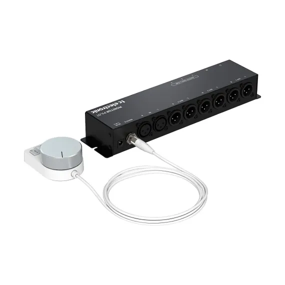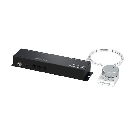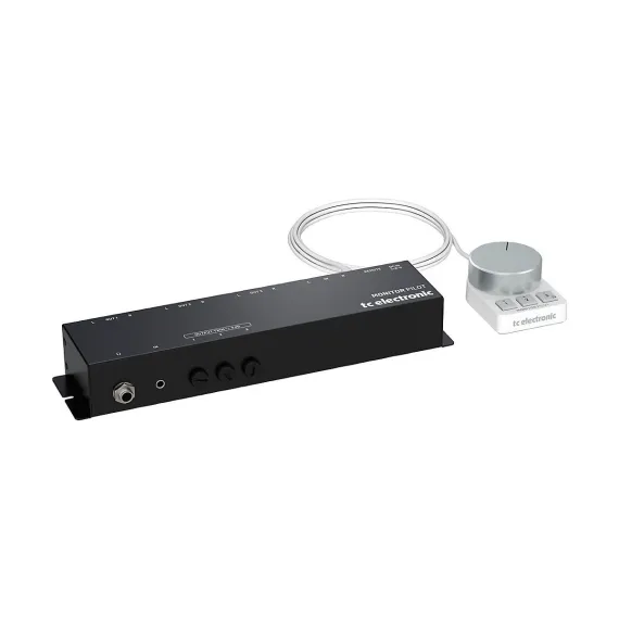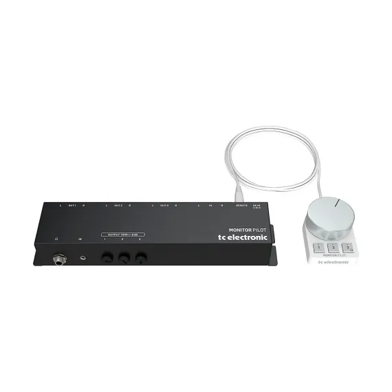 The TC Electronics monitor pilot multi-monitor switching station brings seamless control to studio monitoring setup. With the sleek desktop controller, get tactile precision volume control via the solid aluminum knob. There's also a convenient front panel stereo headphone output and media device input.