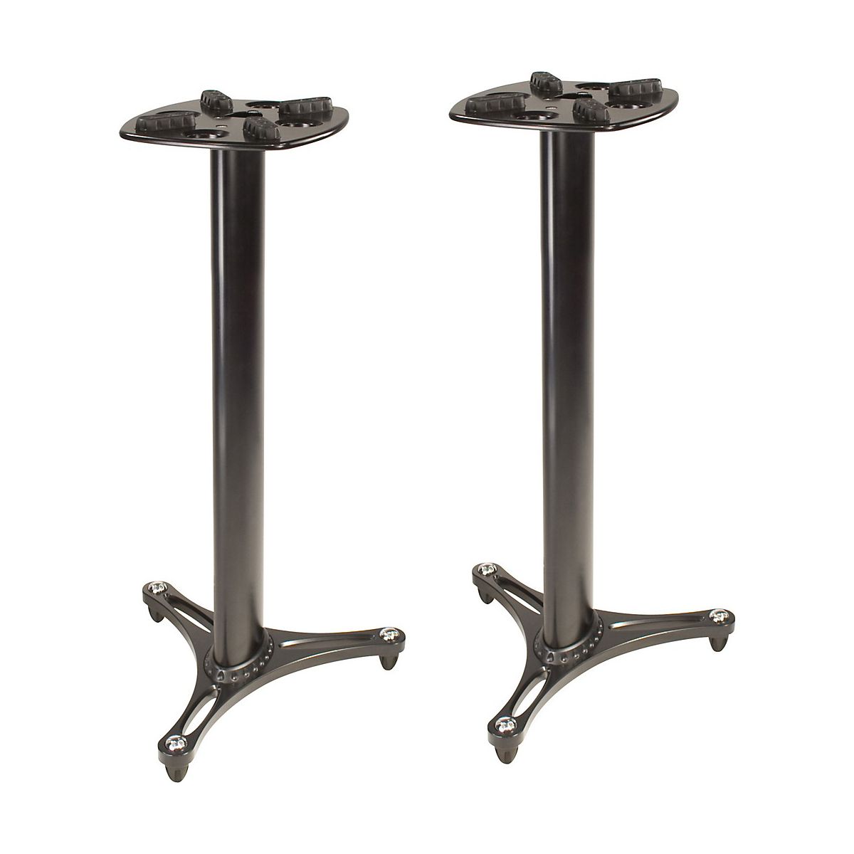 MS-90-36 studio reference monitor stands are 36" tall column-style stands made of sturdy, Series 6000 aluminum, and are designed for both exceptional support as well as practicality and style. They feature three internal cable channels that run the length of the column, giving the opportunity to run a power cable and audio cable through two, while filling the third with sand or shot for even more stability. Speaking of stability, MS-90-36's feature four non-marring sound decoupling pads that also help keep monitors more stabilized regardless of their size (up to 75lb. each). They also have two rubber couplers between the column and the top/bottom plates and spike decoupling designs under the top and bottom base plates for even better acoustic isolation. All in all, get contemporary-looking stands with an award-winning design that are ideal for any kind of studio.