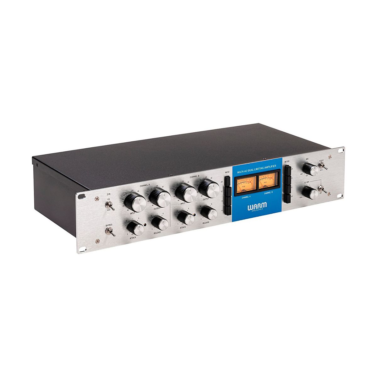 The WA76-A2 delivers all the controls expect from a vintage 76-style compressor like attack, release, ratio, input and output. As a stereo unit, it also provides a dry/wet mix for parallel compression, selectable input impedance to match modern preamps and variable sidechain filtering. These additions give flexibility for modern workflows without sacrificing the 76's highly sought-after vintage vibe.