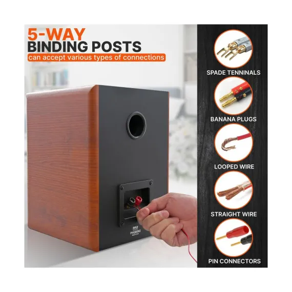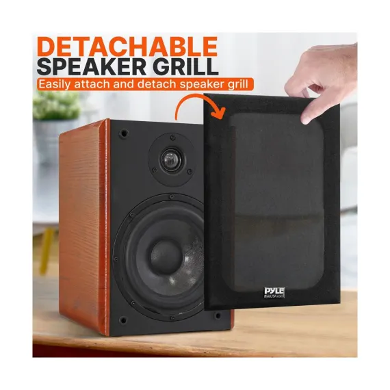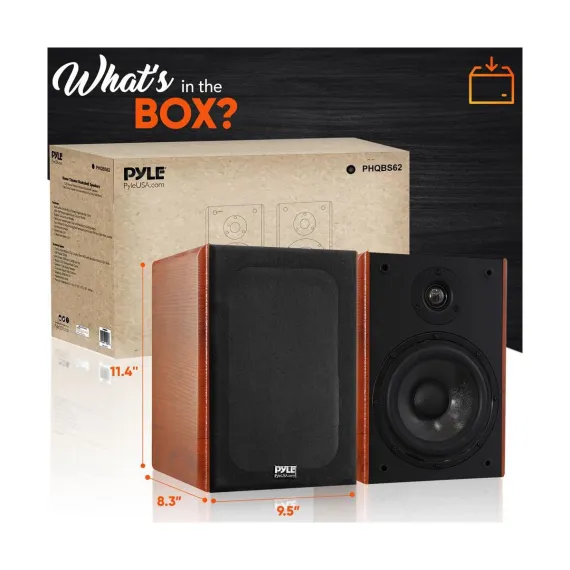 The Pyle 6.5’’ Home Theater Wooden Bookshelf Speakers are designed to deliver audiophile-grade sound quality in a sleek and elegant form factor. Each speaker features a 1’’ silk dome tweeter for crystal-clear high frequencies and a 6.5’’ woofer with an ultra-stiff polypropylene dust cap for deep and powerful bass response. The gold-plated 5-way binding post terminals allow for easy and secure connectivity with banana plugs, bare wire, or spade terminals. These speakers are built with top-quality 12mm MDF construction and feature a stylish wood grain finish. Whether used in a home theater system or as standalone speakers, they offer a rich and immersive audio experience. With a maximum power of 240W and a frequency response range of 65Hz – 20KHz, these speakers are perfect for enjoying music, movies, and more in your living space.