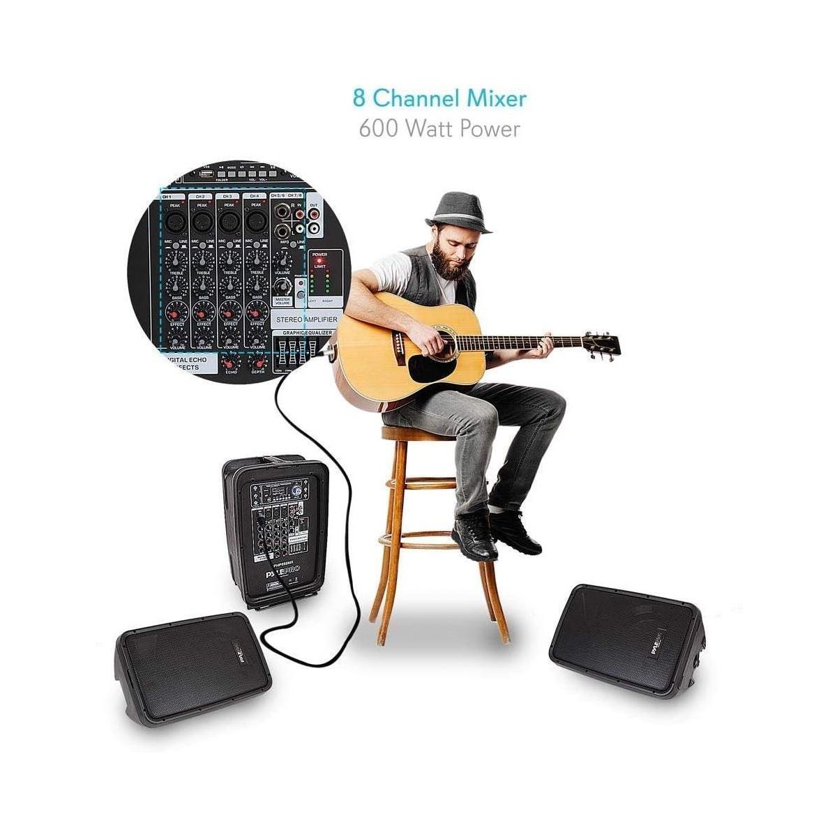 600 Watt Portable Speaker for Events with 8 Channels, Bluetooth Compatible, Compact Design