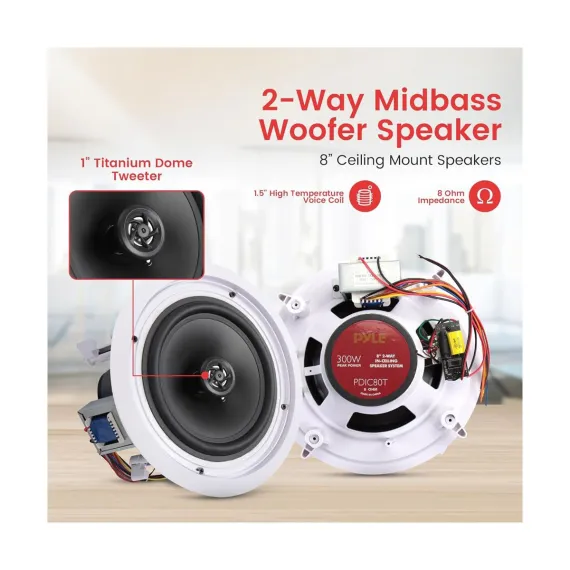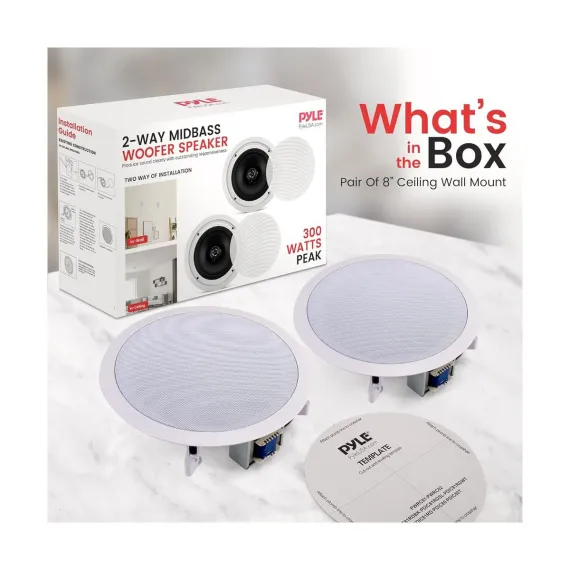 8" Ceiling Wall Mount Speakers for Home Audio with High-Quality Sound, Easy Installation, White Finish