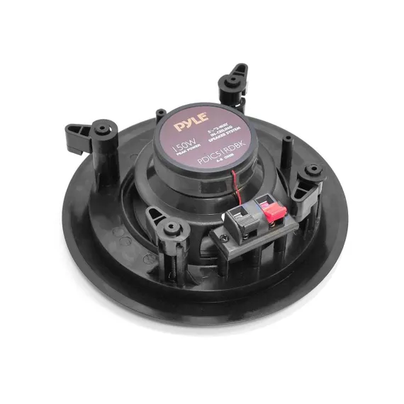 The Pyle PDIC speaker system delivers stereo sound to any room in your home or office without cluttering floor space. This pair of 8'' speakers can be used for in wall and in ceiling applications as they mount flush for a clean look. Perfect for custom installations, the PDIC series speakers feature polymer dome tweeters, impressive power handling capability, high temperature voice coils and high efficiency response rates – all to produce more full and rich sound. Convenient speaker terminals allow for quick and hassle free speaker wire connection. System includes cut out template for easy installation. Achieve wide ranged sound performance and add audio to any room with the PDIC Speaker Systems.