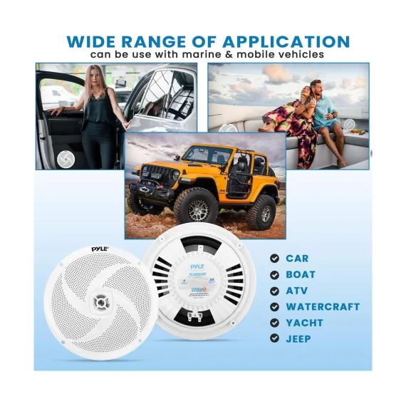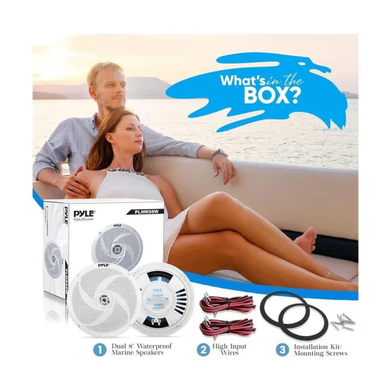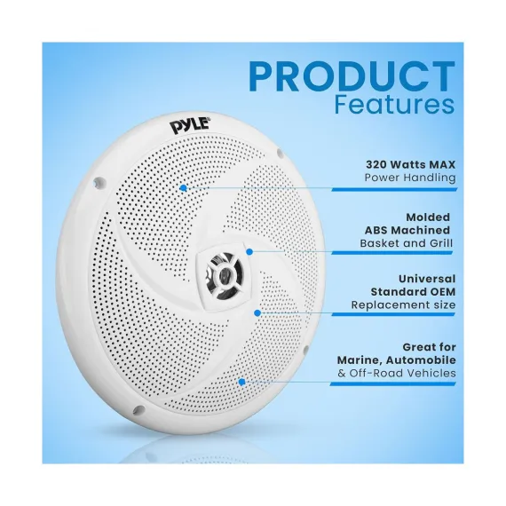 Upgrade your boat or off-road vehicle with Pyle’s 8" waterproof marine component speakers in a sleek white design. These rugged speakers are built with durable materials, offering a waterproof and weather-resistant construction perfect for marine environments. Featuring 320W max power output (160W RMS), they deliver clear and robust 2-way full-range stereo sound. The slim, low-profile design allows for easy installation in tight spaces, while the molded ABS baskets and grills provide added durability. Whether on a boat, marine watercraft, or off-road vehicle, these speakers are engineered to offer long-lasting performance in any environment.