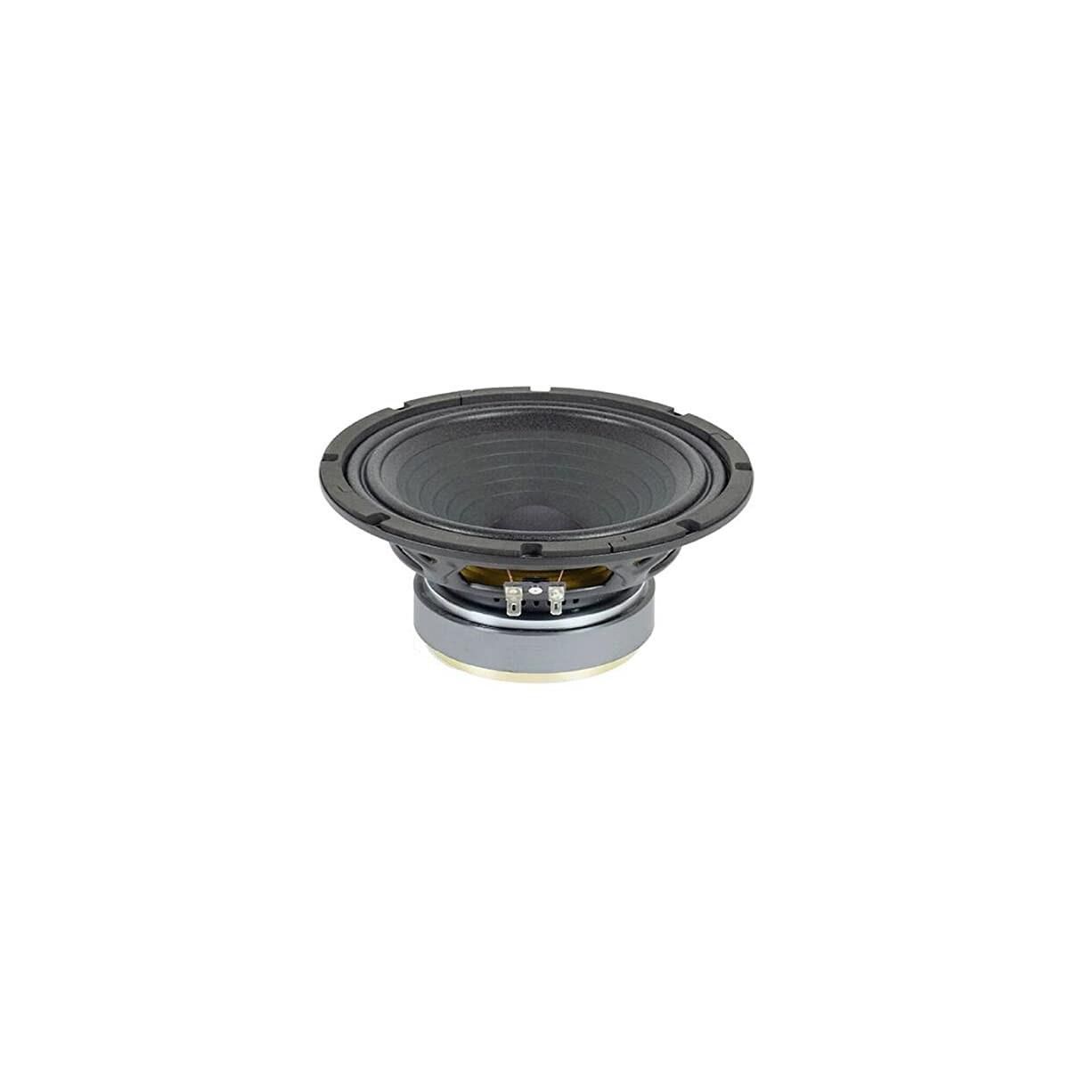* Optimized pressed steel frame * Ferrite magnet * Very linear extended response and low distortion * Treated double roll cloth surround * Designed for bass and midbass applications in compact vented cabinets * Nominal impedance: 4 Ohms * Power capacity: 250 W AES * Nominal diameter: 200 mm 8 in * Sensitivity: 94 dB 1 W/1 m @ ZN * Frequency range: 80-8000 Hz * Program power: 500 W * Recommended enclosure volume: 20 * Voice coil diameter: 38.1 mm 1.5 in