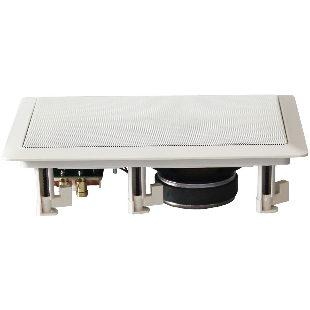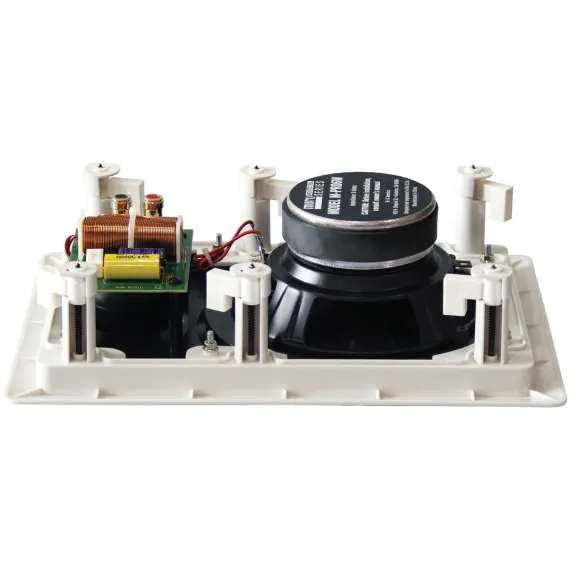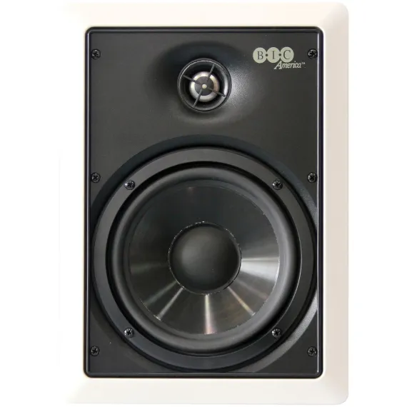 The BIC America weather-resistant pair of M-PRO6W in-wall speakers offers superb performance for both music and home theater applications. They can also be used in a ceiling! M-PRO6W include the same 6-1/2-in. polygraphite woofers as the top-rated BIC DV62si bookshelf speakers, enabling extended bass output with an accurate balance of sound. Their 1-in. pivoting liquid-cooled titanium tweeters offer maximized dispersion and can be aimed toward your listening area to ensure lifelike sound and imaging. The M-PRO6Ws come with 1 pair of weatherized metal paintable grilles and 1 pair of white cloth decor grilles with Scotchguard, offering a clean, classy look for those not interested in painting their grilles. Gold-plated push binding posts are used for easy installation. BIC models that match well with the M-PRO6W are the DV32BL, Adatto V52si and DV62si bookshelf speakers, DV32CLR, DV52CLR-B, and DV62CLR-S center speakers, and DV64 and DV84 tower speakers.
