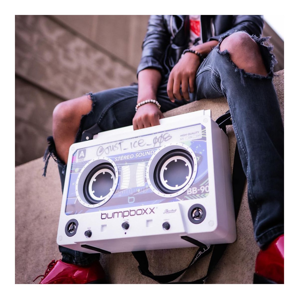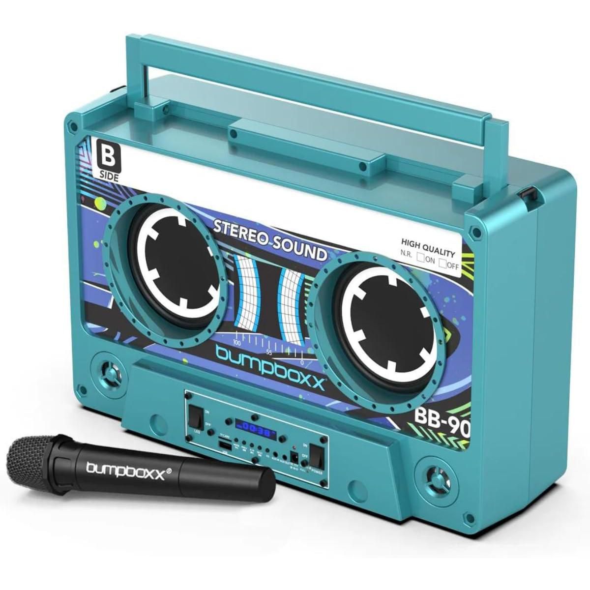 This portable Bluetooth Speaker is in the shape of a retro cassette tape. The Remixx can easily go everywhere, weighing in at only 12.5 pounds. With dual bass radiators, two drivers, and four tweeters, also comes with a wireless microphone for karaoke fun. You can Sync two units wirelessly in TWS (True Wireless Stereo) mode for a louder surround sound experience. Connect your device via Bluetooth or use the Micro SD card slot