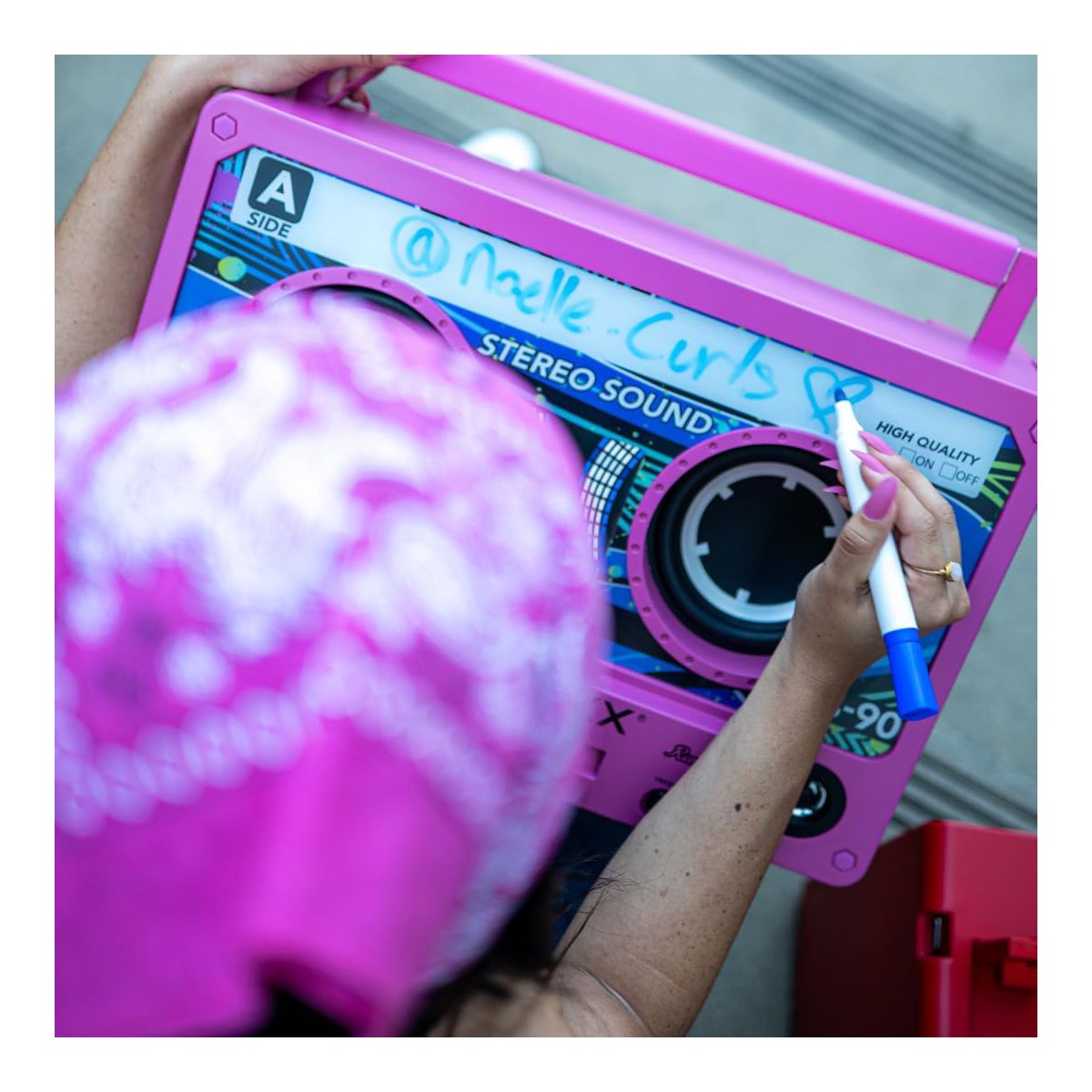 This portable Bluetooth Speaker is in the shape of a retro cassette tape. The Remixx can easily go everywhere, weighing in at only 12.5 pounds. With dual bass radiators, two drivers, and four tweeters, also comes with a wireless microphone for karaoke fun. You can Sync two units wirelessly in TWS (True Wireless Stereo) mode for a louder surround sound experience. Connect your device via Bluetooth or use the Micro SD card slot Features: • Portable Bluetooth Speaker • Bluetooth Connectivity • TWS Wireless Pairing of 2 Units • Dual Rear Bass Radiators • 3.5mm Line In/ Out / Aux In • USB Charging Port • Rechargeable Lithium Battery w/ 12hr Play Time • TFT & USB MP3 Player • 5 EQ Settings • Wireless Microphone Included • Weight 12.5lbs • 175 Watts Max Power