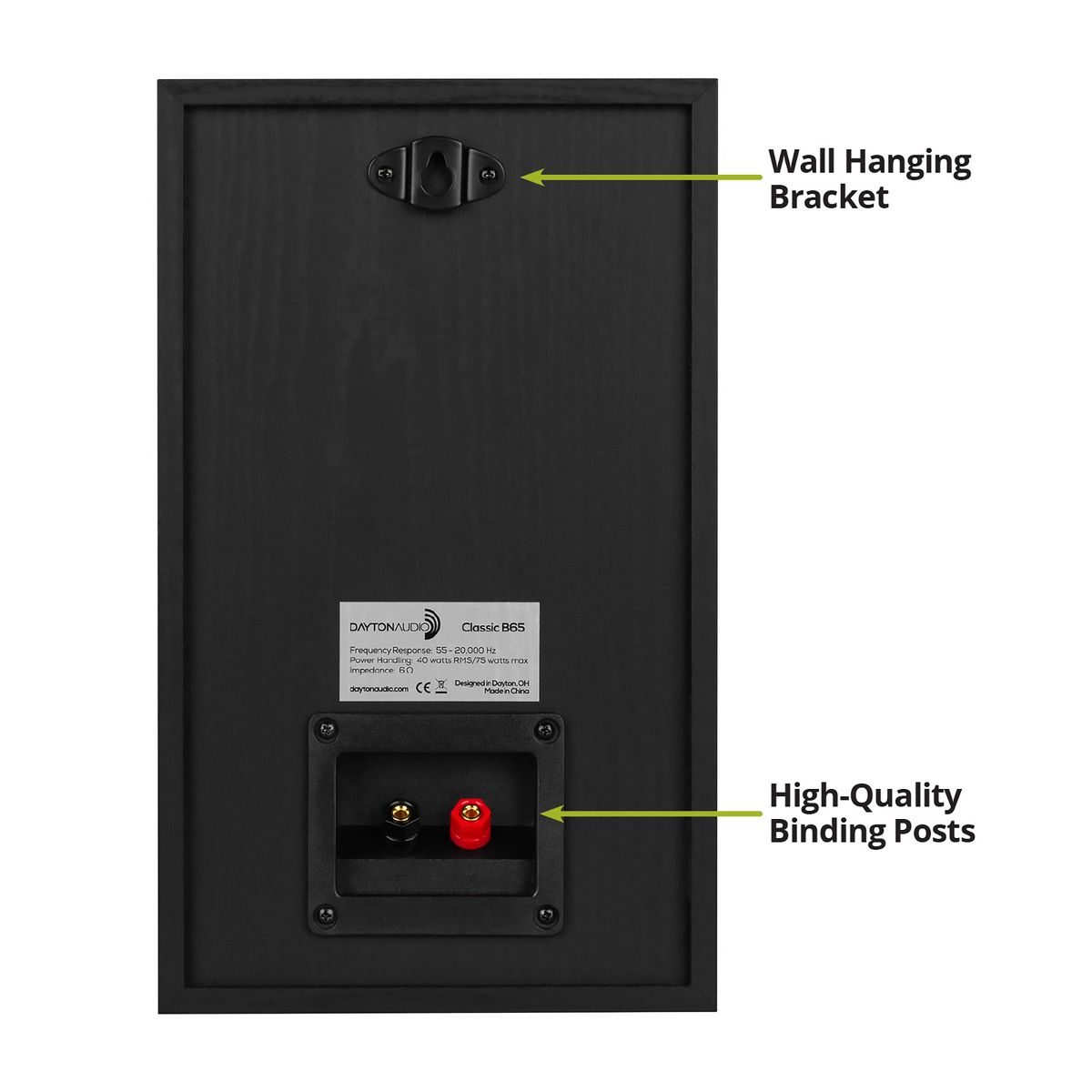 Leveraging decades of experience in speaker design, the pair of Dayton Audio® Classic B65 Bookshelf Speakers maximizes the intersection of value and performance, producing an audio experience beyond the expectations that their price suggests. Each speaker boasts an elegant cabinet design that houses a Dayton Audio® 6.5-in. bass driver and 1-in. silk dome tweeter. The Hi-Fi crossover carefully directs the appropriate frequencies to the woofer and tweeter to facilitate seamless integration between the 2, resulting in a cohesive and unified soundstage. From the first note of your favorite song, you'll be captivated by an extraordinary musical experience filled with rich, detailed clarity. Rear wall mounting brackets enable the B65 to be wall mounted next to a TV, used as surround sound speakers in a home theater, or simply placed up, out of the way in a restaurant or workspace. For anyone looking to enhance their audio experience without spending a fortune, the Dayton Audio® B65 are an outstanding choice that offer an unprecedented value!