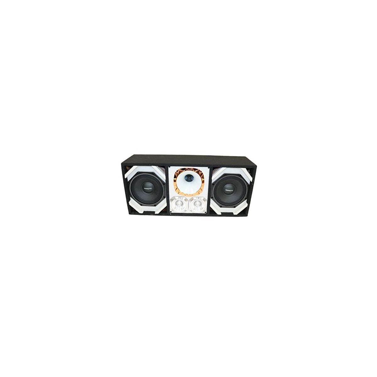 * Carpeted speaker system with two high power 8-in woofers and two tweeters and one high power horn * Prewired system with prewired quick release plug * Three sealed chambers with two quad ports one for each woofer * Heavy duty carpet with quality embroidered stitched logo * 12mm plywood heavy duty construction * Two high powered tweeters * One high powered horn * Includes the DEEJAY LED model 8 conductor quick release plug socket requires model TBH8P