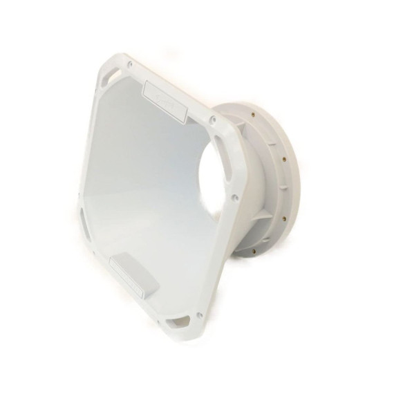 * High Grade Injection PP * Accurate Exponential Flare With Great Directivity Construction. * Optimized Curves For Low Distortion * Reinforced Neck Joint For 6.5-in Speaker * Throat: 6.5-in * Material:PP * Eight inset rear bolt configuration plus eight top bolt holes * Driver Connection: Bolt-on holes to center: 159 mm * Driver outer flange across:172 mm * Opening 102 mm * Top Edge: 9.21-in (233.96mm) Square * Height: 5.27-in (133.98mm) horn