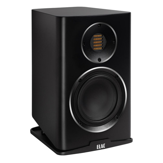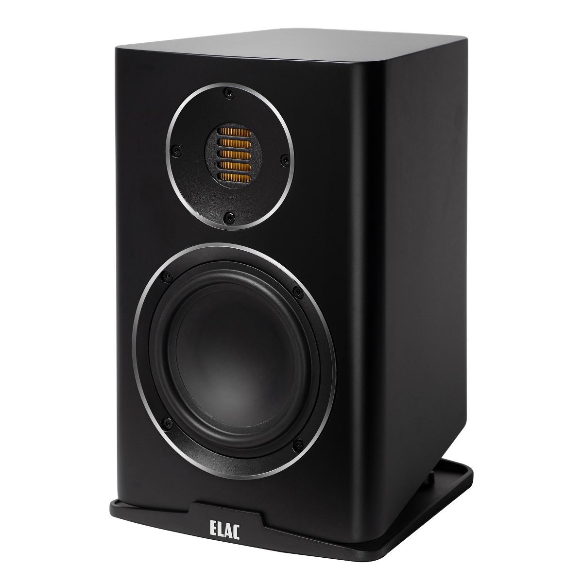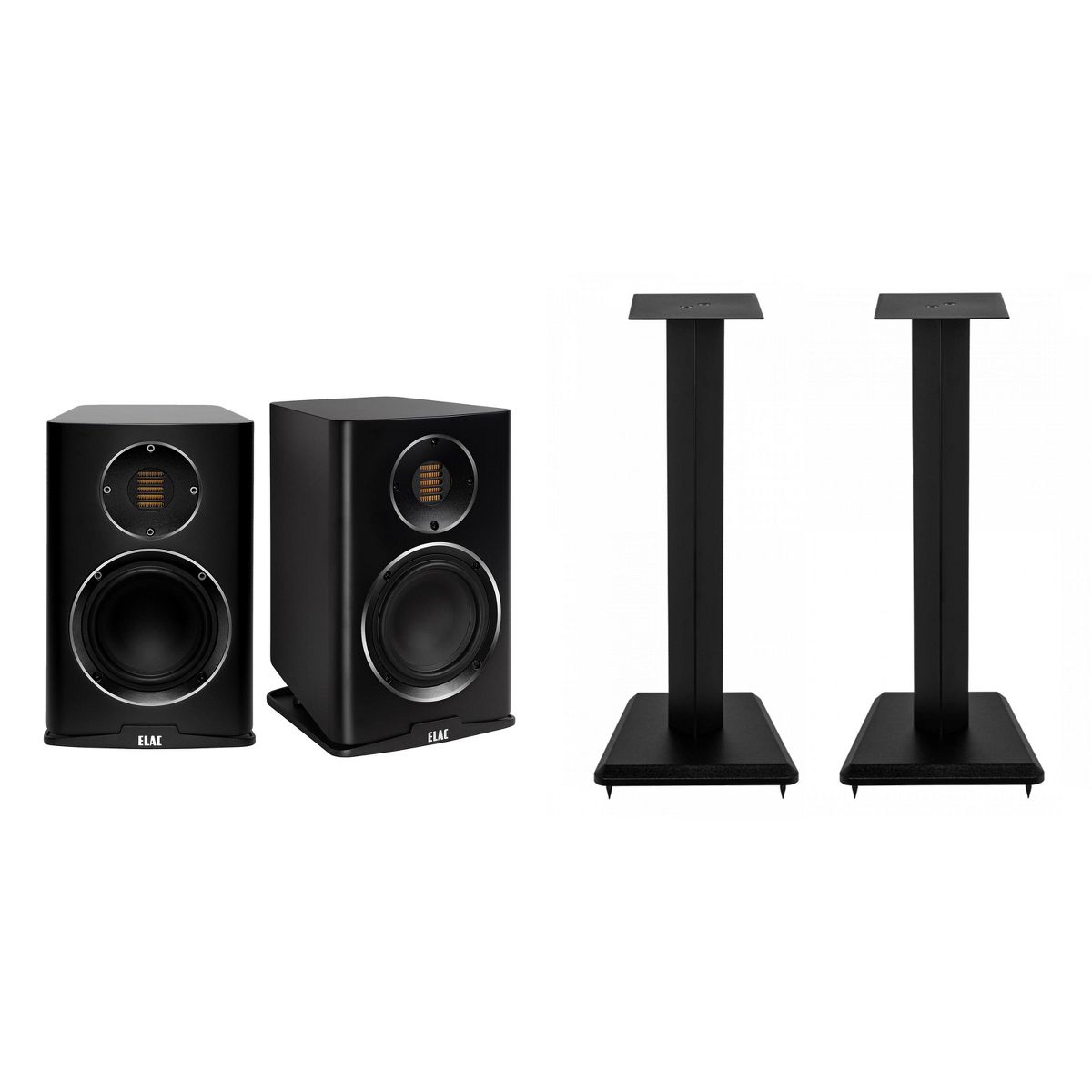 Elevate your audio experience with the Elac BS243.4-SB Carina 5.25" Bookshelf Speakers in Satin Black, Pair, and Elac LS10-B 23" Steel and Wood Speaker Stands in Black, Pair bundle. Enjoy the precision engineering of the Carina speakers, featuring JET tweeters for high-definition sound and a bass reflex port for immersive audio. The aluminum woofer and JET Folded Ribbon Tweeter offer an extended frequency range and wide dynamic range. With a bi-wiring configuration and a die-cast bottom plate with bass port, these speakers deliver exceptional sound quality. The convex baffle shape reduces reflections for a clearer sound. Specifications include a 2-way vented box type, aluminum cone woofer, JET folded ribbon tweeter, and a frequency range from 46Hz to 30kHz. The speakers have a sensitivity of 85dB, recommended amplifier power of 30 to 150 watts per channel, and a peak power handling of 100W. The nominal impedance is 6 Ohms, and the speakers come in a sleek Satin Black finish. Each speaker weighs 14.73 lbs and measures 08.52 × 08.06 x 12.54 inches (HxWxD).