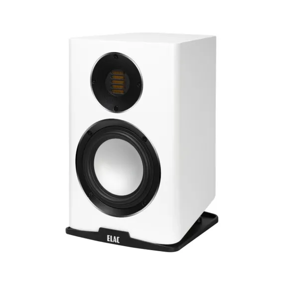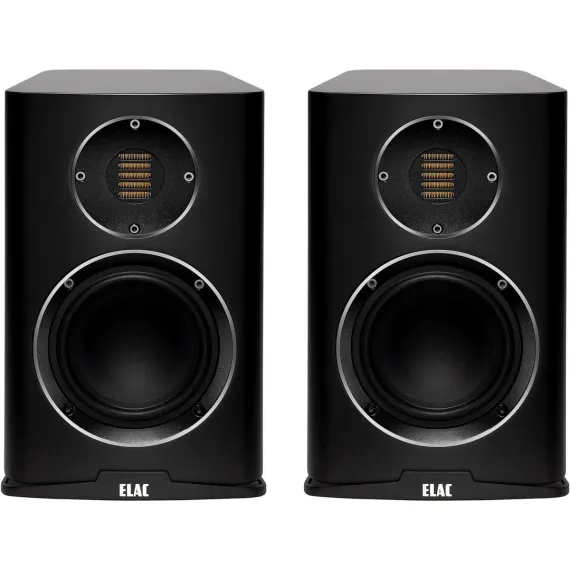 The Carina Bookshelf Satin Black Surround Sound Speakers from ELAC offer a fresh look and sound, designed to deliver remarkable audio quality even in small spaces. These compact home stereo speakers feature a JET tweeter, known for its exceptional clarity, dynamic range, and frequency response. The speakers also utilize a proprietary compound curvature aluminum cone woofer, seamlessly blended with a sophisticated multi-element crossover for an organic, lifelike sound. The JET tweeter also reduces sound distortion, offering better sound reproduction. The speakers' 5-1/4" woofer moves the cone breakup mode outside of the operating range, improving bass reproduction. With a 6-ohm impedance, these speakers offer cleaner sound compatible with nearly all amplifiers and receivers. The Carina speakers also have a downward firing port for flexible room placement and even bass distribution. Finished with satin paint and a cast aluminum base, these speakers add a touch of sophistication to any home interior