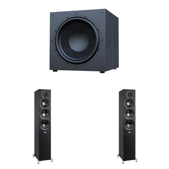 Elac Debut 3.0 Df53 Black Tower Speakers (Pair) With Debut 15 Inch Subwoofer